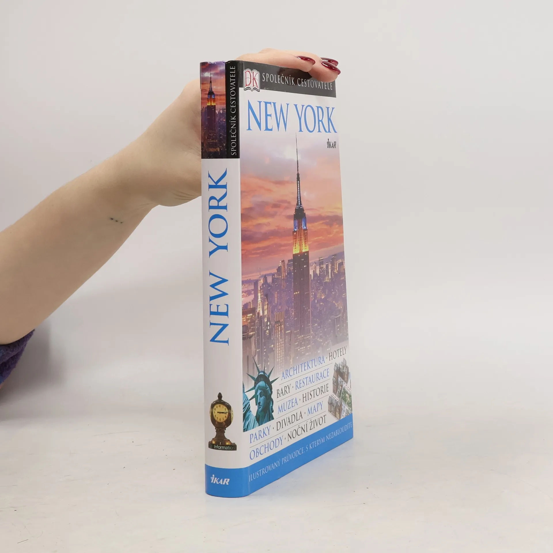 Více než 1200 fotografií vám představí New York v celé kráse. Jedinečné průřezy a plány podlaží vám umožní nahlédnout do veřejných budov a památek, v Nezbytných údajích doplněných obrázky se dozvíte, jak používat místní měnu, hromadnou dopravu a telefony. Pomůžeme vám orientovat se v množství hotelů, restaurací, barů a kaváren všech cenových kategoriích. Vydání 5.