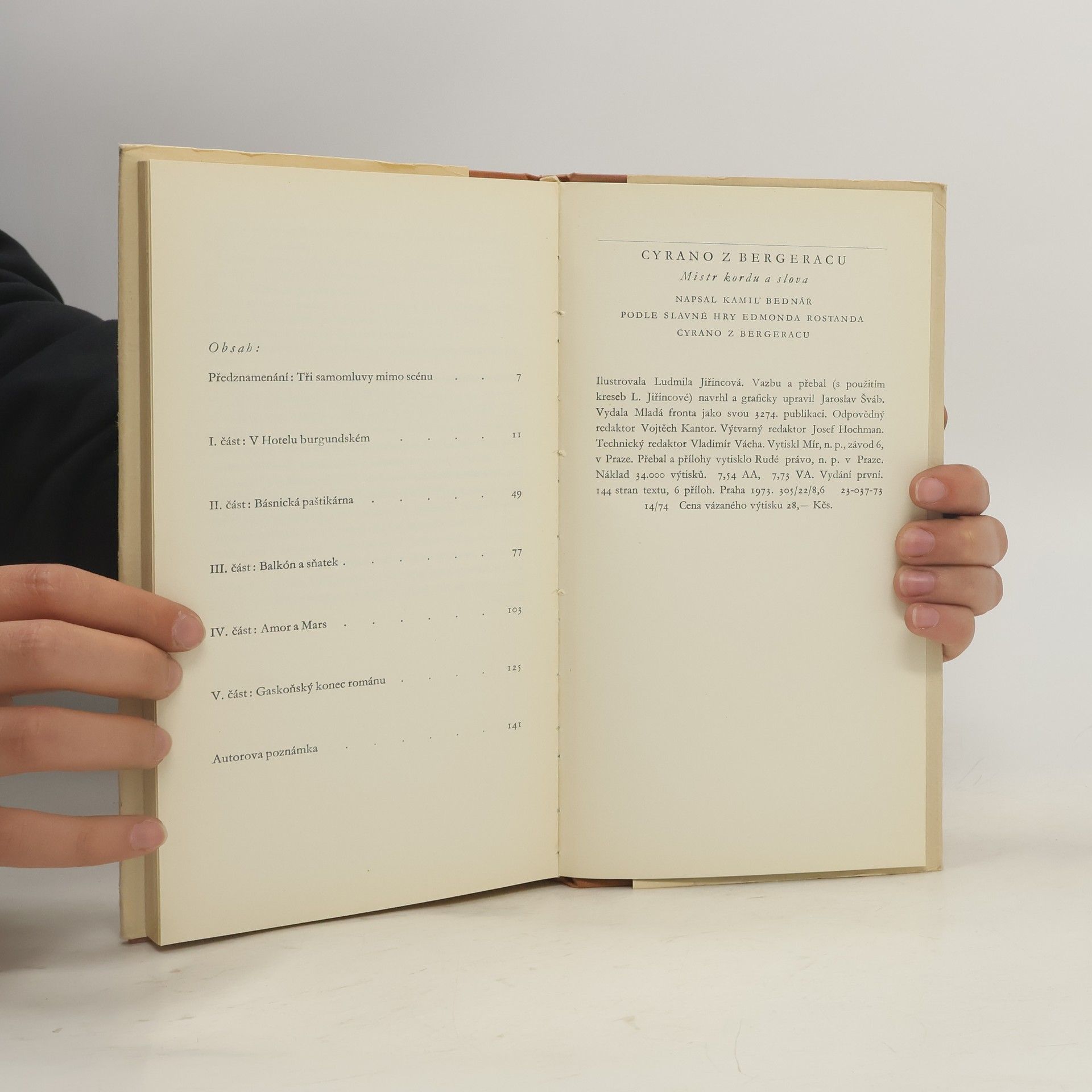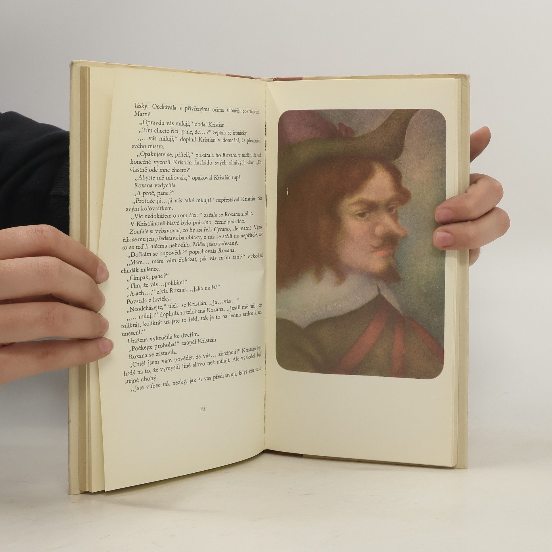 „Zde šlo o tvůrčí proměnu uměleckého tvaru, a důvodem k tomu byla snaha seznámit vyšší ročníky dětských čtenářů a mládež s geniálním dílem Edmonda Rostanda. Prozaický příběh, komponovaný pro mladé čtenáře, splní tento úkol lépe než hra, určená jen pro dospělé a ztrácející mnohé, je-li otištěna knižně ...“ Takto komentuje autor beletristický přepis divadelní hry o krásné Roxaně a o jejím neúspěšném romantickém milenci s nehezkým nosem, o básníku a šermíři Cyranovi, který svým duchem a vtipem pomáhá v lásce Kristiánovi. 1.vydání.