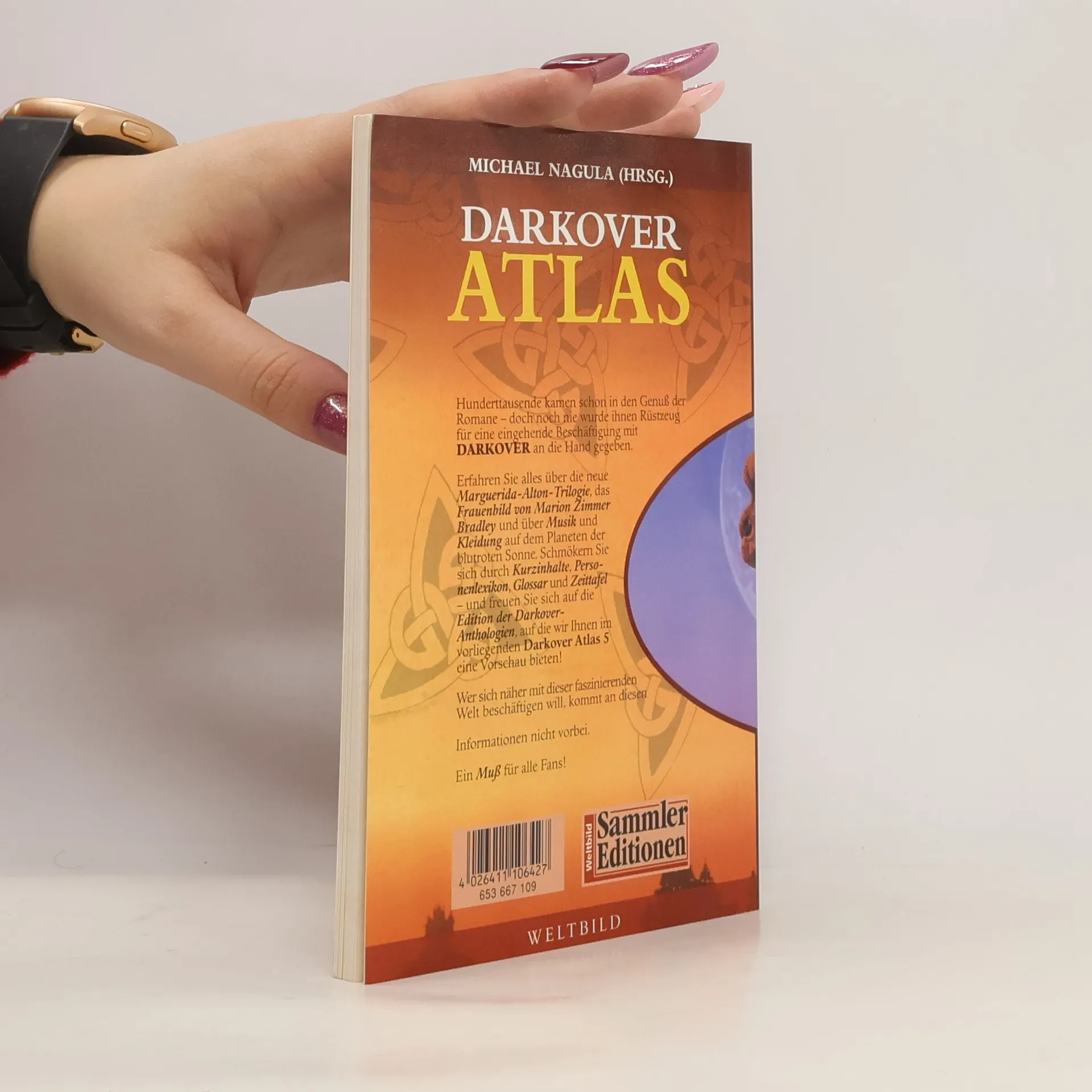 Hundertausende kamen schon in den Genuß der Romane - doch noch nie wurde ihnen Rüstzeug für eine eingehende Beschäftigung mit Darkover an die Hand gegeben.Erfahren Sie alles über die neue Marguerida-Alton Trilogy, das Frauenbild von Marion Zimmer Bradley und über Musik und Kleidung auf dem Planeten der blutroten Sonne. Schmöckern Sie sich durch Kurzinhalte, Personenlexikon, Glossar und Zeittafal - und freuen Sie sich auf die Edition der Darkover-Anthologien, auf die wir Ihnen im vorliegenden Darkover Atlas 5 eine Vorschau bieten!Wer sich näher mit dieser faszinierenden Welt beschäftigen will, kommt an diese Informationen nicht vorbei.Ein Muß für alle Fans!