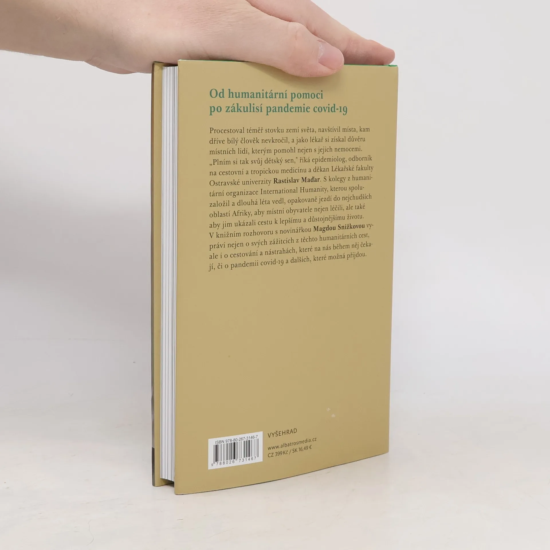 Od humanitární pomoci po zákulisí pandemie covid-19. Rozhovor s předním epidemiologem. Procestoval téměř stovku zemí, do těch nejchudších se vrací opakovaně, aby místním lidem pomáhal k lepší budoucnosti. „Plním si tak svůj dětský sen. Je to dar, za který jsem vděčný,“ říká Rastislav Maďar, odborník na infekční nemoci a děkan Lékařské fakulty Ostravské univerzity. Navštívil místa, kde předtím nebyl bílý člověk, a získal si důvěru lidí, kteří se běžně s turisty nesetkávají. V knižním rozhovoru s novinářkou Magdou Snížkovou vypráví přední epidemiolog, specialista na cestovní a tropickou medicínu a zakladatel organizace International Humanity Rastislav Maďar o svých zážitcích z humanitárních cest do rozvojových zemí, o cestování a nástrahách, které na nás číhají, i o pandemii covid-19 a dalších, kterým budeme čelit.