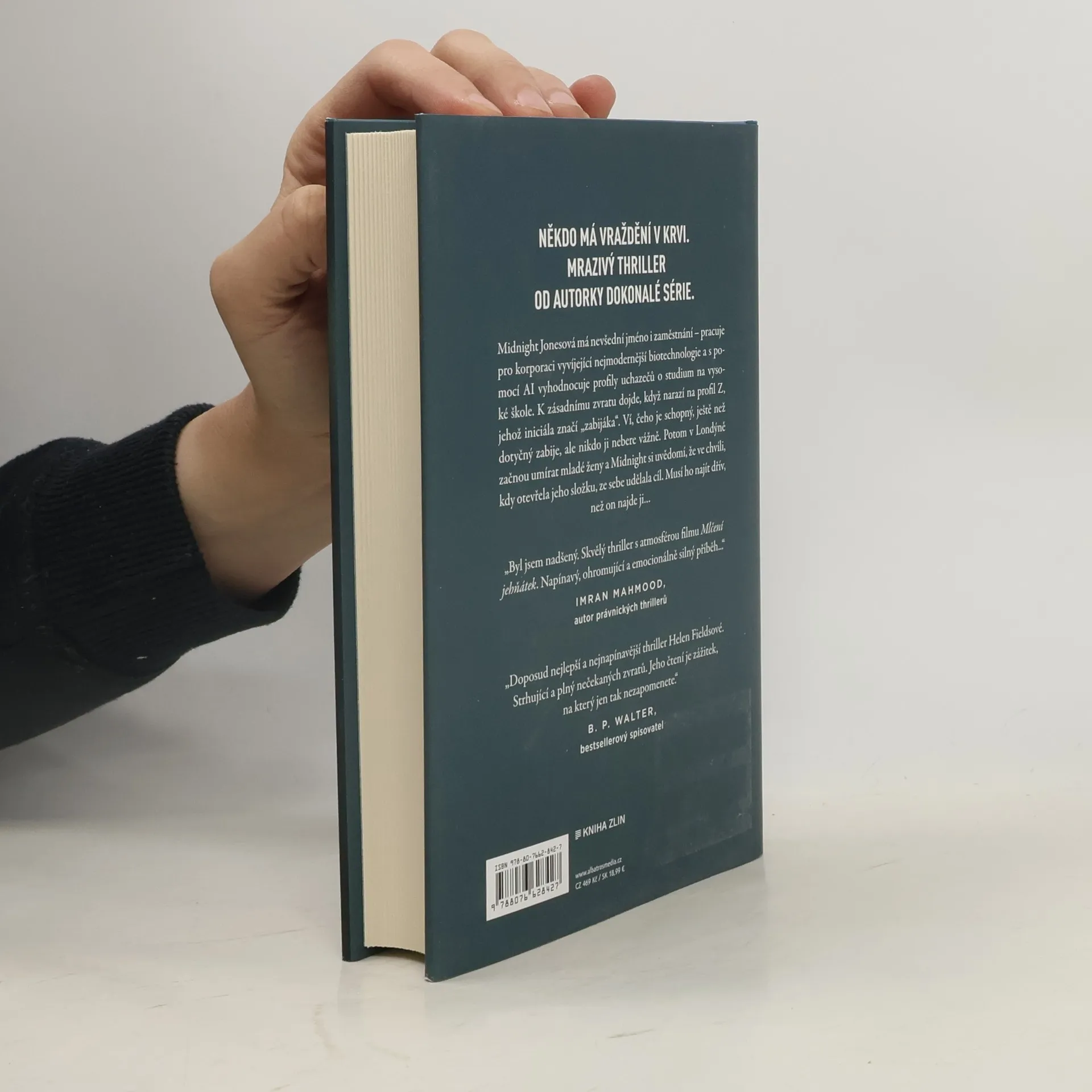 Někdo má vraždění v krvi. Mrazivý thriller od autorky Dokonalé série. Midnight Jonesová má nevšední jméno i zaměstnání – pracuje pro korporaci vyvíjející nejmodernější biotechnologie a s pomocí AI vyhodnocuje profily uchazečů o studium na vysoké škole. K zásadnímu zvratu dojde, když narazí na profil Z, jehož iniciála značí „zabijáka“. Ví, čeho je schopný, ještě než dotyčný zabije, ale nikdo ji nebere vážně. Potom v Londýně začnou umírat mladé ženy a Midnight si uvědomí, že ve chvíli, kdy otevřela jeho složku, ze sebe udělala cíl. Musí ho najít dřív, než on najde ji…