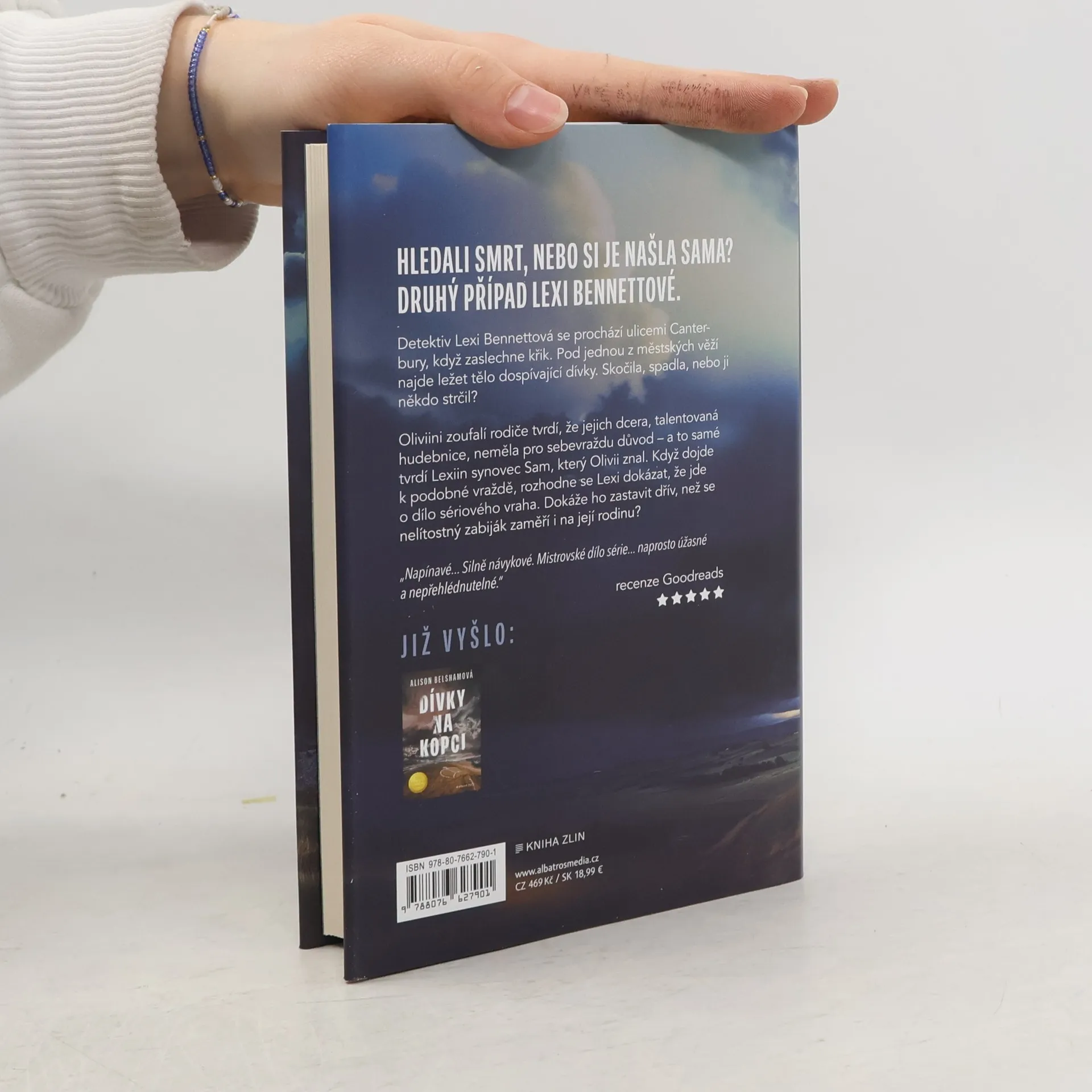 Hledali smrt, nebo si je našla sama? Druhý případ Lexi Bennettové. Detektiv Lexi Bennettová se prochází ulicemi Canterbury, když zaslechne křik. Pod jednou z městských věží najde ležet tělo dospívající dívky. Skočila, spadla, nebo ji někdo strčil? Oliviini zoufalí rodiče tvrdí, že jejich dcera, talentovaná hudebnice, neměla pro sebevraždu důvod – a to samé tvrdí Lexiin synovec Sam, který Olivii znal. Když dojde k podobné události, rozhodne se Lexi dokázat, že jde o dílo sériového vraha. Dokáže ho zastavit dřív, než se nelítostný zabiják zaměří i na její rodinu?