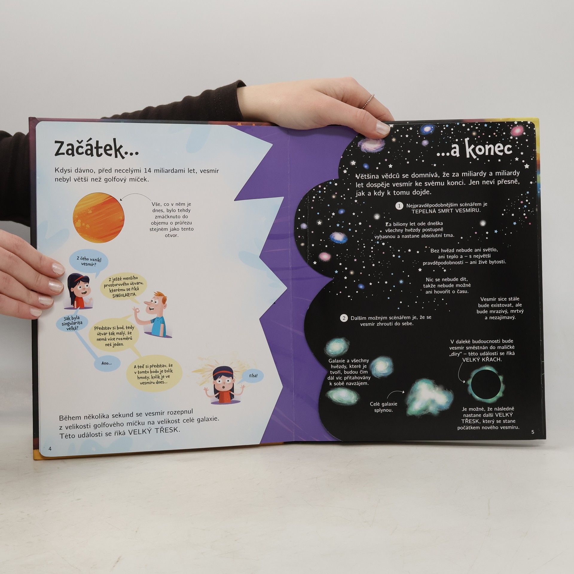 Kniha přináší základní informace o tom, co je vesmír, z čeho je všechno složeno, jak to všechno začalo a jak vesmír jednou skončí, jak vědci pozorují vesmír; obsahuje i stručné shrnutí dějin astronomie. Pod 70 otevíracími okénky se skrývají další obrázky a informace.