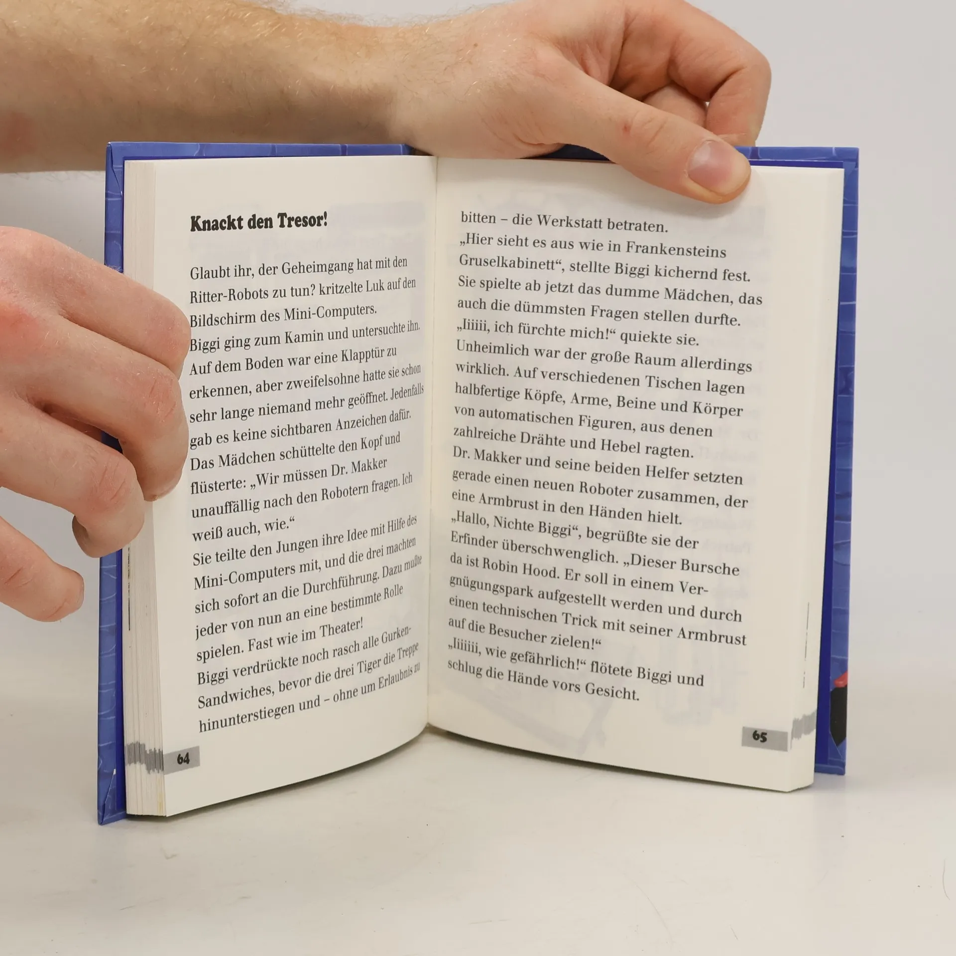 Das 4. Abenteuer des Tiger-Teams. Biggi flattert ein rätselhafter Brief ins Haus: Der Wissenschaftler Dr. Mortimer Makker benötigt die Hilfe des Tiger-Teams. Gefährliche Roboter in Ritterrüstungen sind verschwunden und sollen für ein Verbrechen missbraucht werden. Können Biggi, Luk und Patrick die Robots noch rechtzeitig aufspüren?