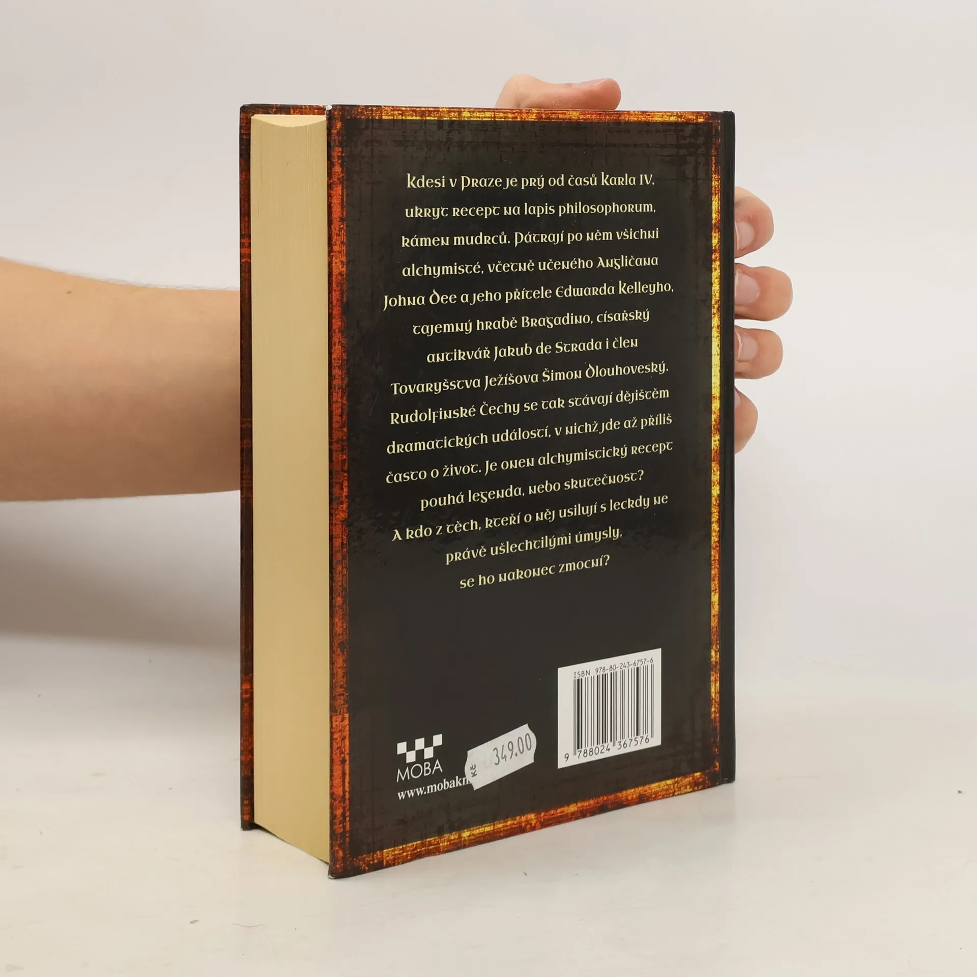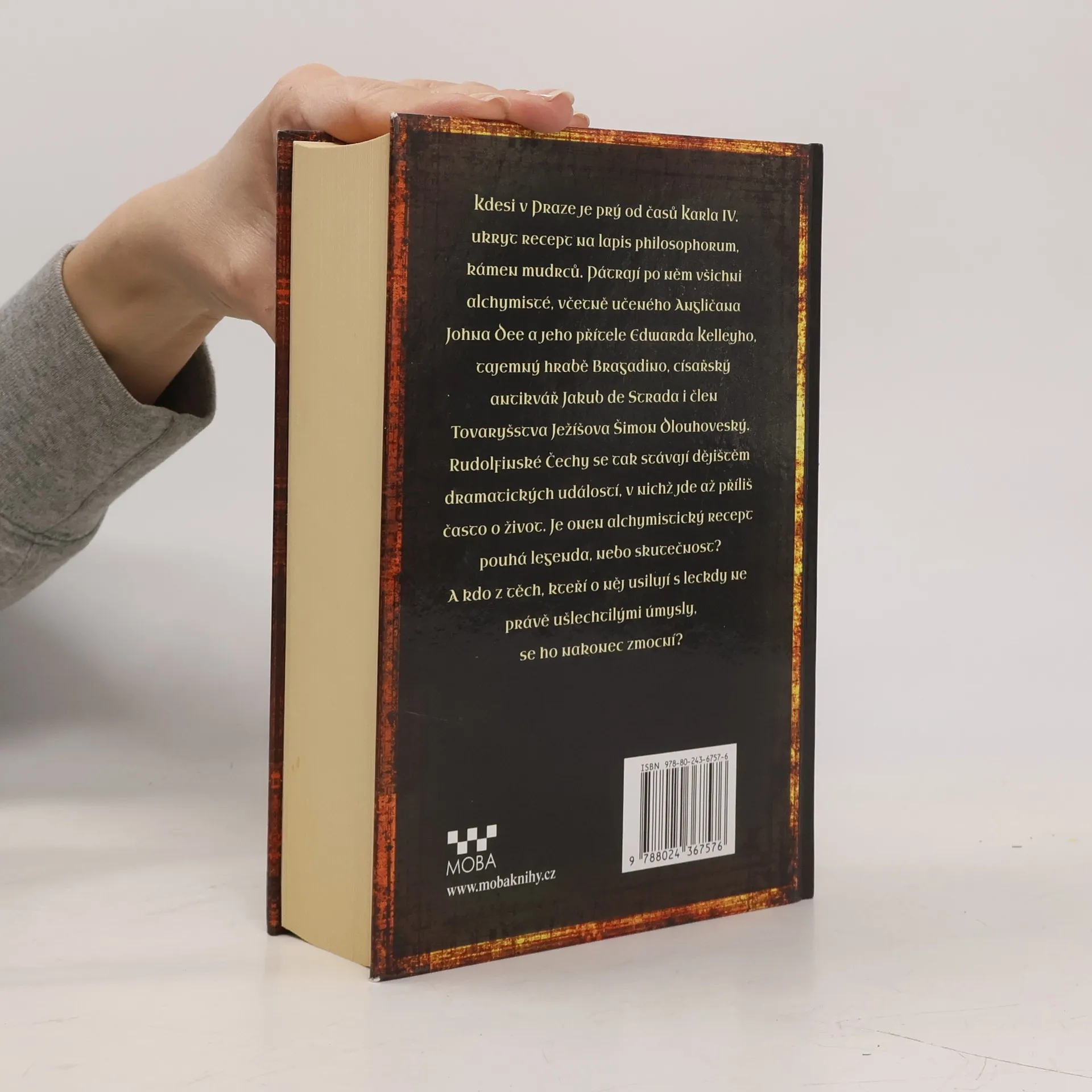 Kdesi v Praze je prý od časů Karla IV. ukryt recept na lapis philosophorum, kámen mudrců. Pátrají po něm všichni alchymisté, včetně učeného Angličana Johna Deeajeho přítele Edwarda Kelleyho, tajemný hrabě Bragadino, císařský antikvář Jakub de Strada i tajný agent Tovaryšstva Ježíšova. Rudolfínské Čechy se stávají dějištěm dramatických událostí, v nichž jde až příliš často o život. Je onen alchymistický recept pouhou legendou, nebo skutečností? Kdo z těch, kteří o něj usilují s leckdy ne právě chvályhodnými úmysly, se ho nakonec zmocní?