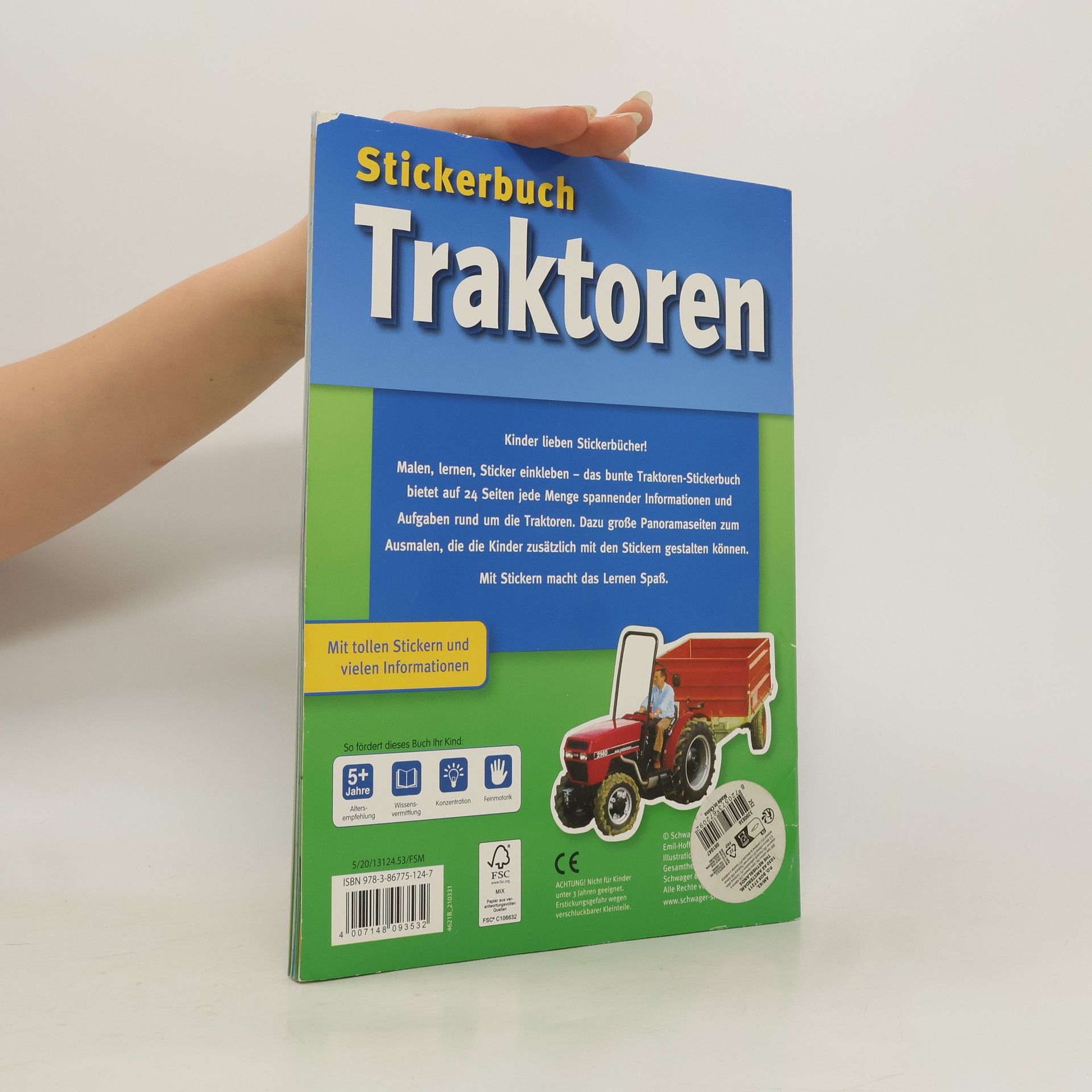 Stickerbuch Traktoren Achtung: Nicht geeignet für Kinder unter 3 Jahren. Erstickungsgefahr wegen verschluckbarer Kleinteile.