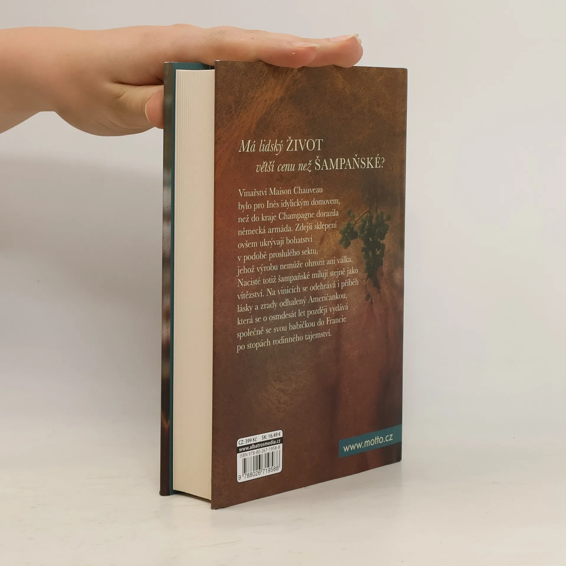 Láska i zrada s chutí šampaňského. Vinařství Maison Chauveau bylo pro Ines idylickým domovem, než do kraje Champagne dorazila německá armáda. Zdejší sklepení ovšem ukrývají bohatství v podobě proslulého sektu, jehož výrobu nemůže ohrozit ani válka. Nacisté totiž šampaňské milují stejně jako vítězství. Na vinicích se odehrává příběh lásky a zrady odhalený Američankou, která se o osmdesát let později vydává společně se svou babičkou do Francie po stopách rodinného tajemství.