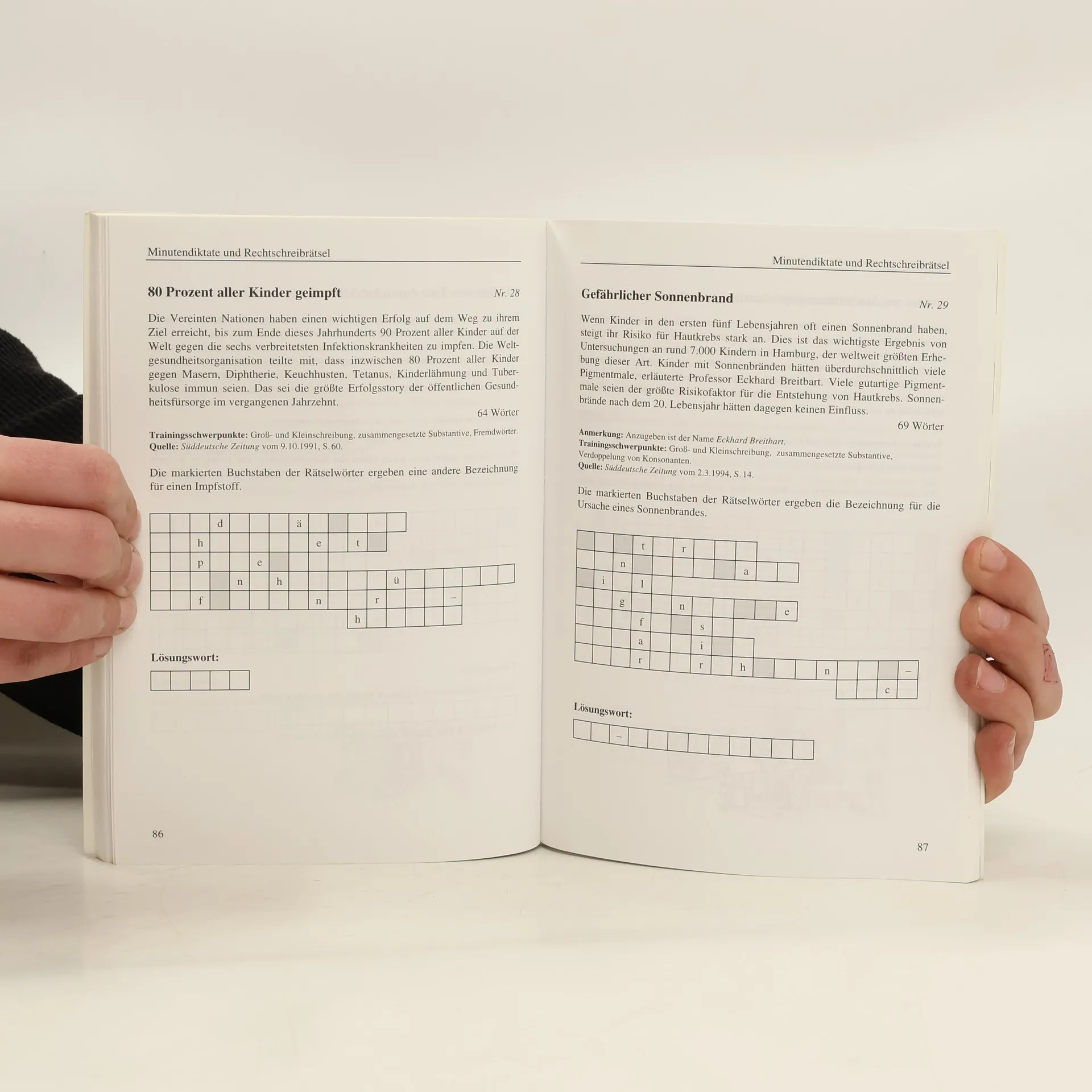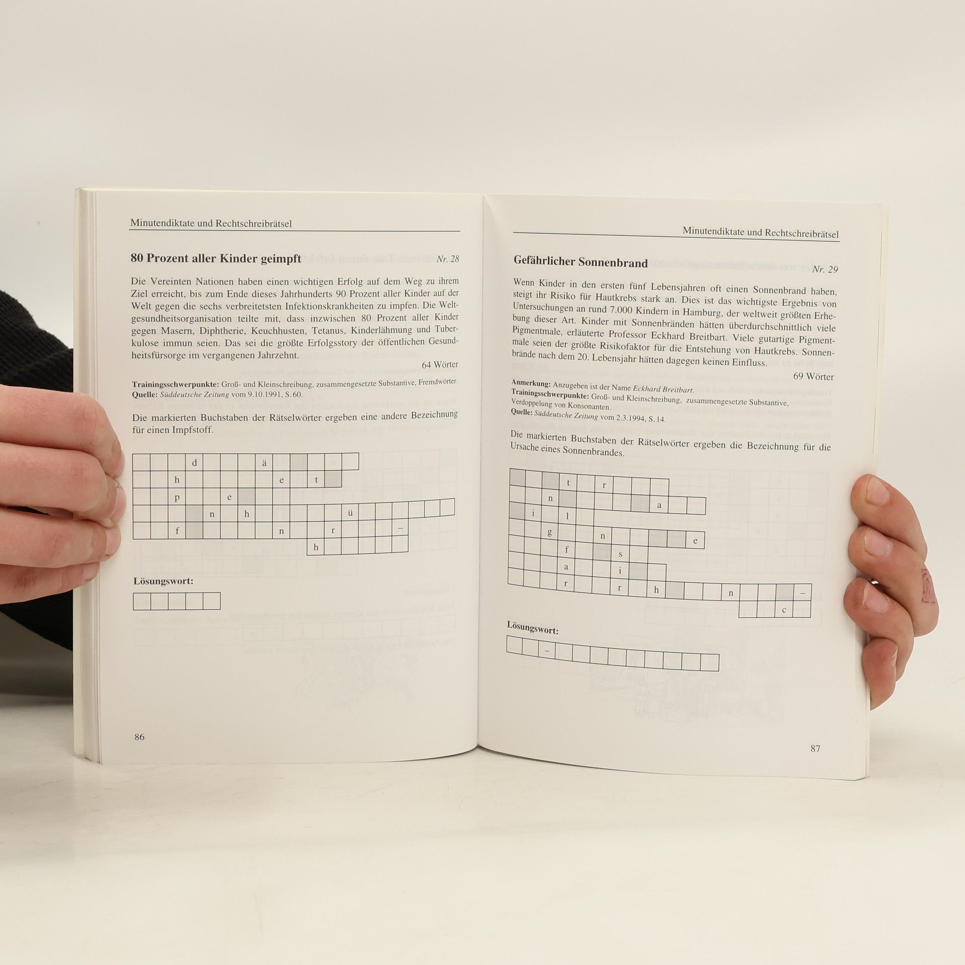 Auf das Wesentliche konzentriertes Trainingsmaterial zu den wichtigsten Phänomenen der deutschen Rechtschreibung, wie z.B. Groß- und Kleinschreibung; Der s-Laut; Dehnung; Getrennt- und Zusammenschreibung; Worttrennung. Spezielle Übungsaufgaben, "Minutendiktate", Rätsel und ausführliche Lösungen ermöglichen eine gezielte Verbesserung der Rechtschreibung