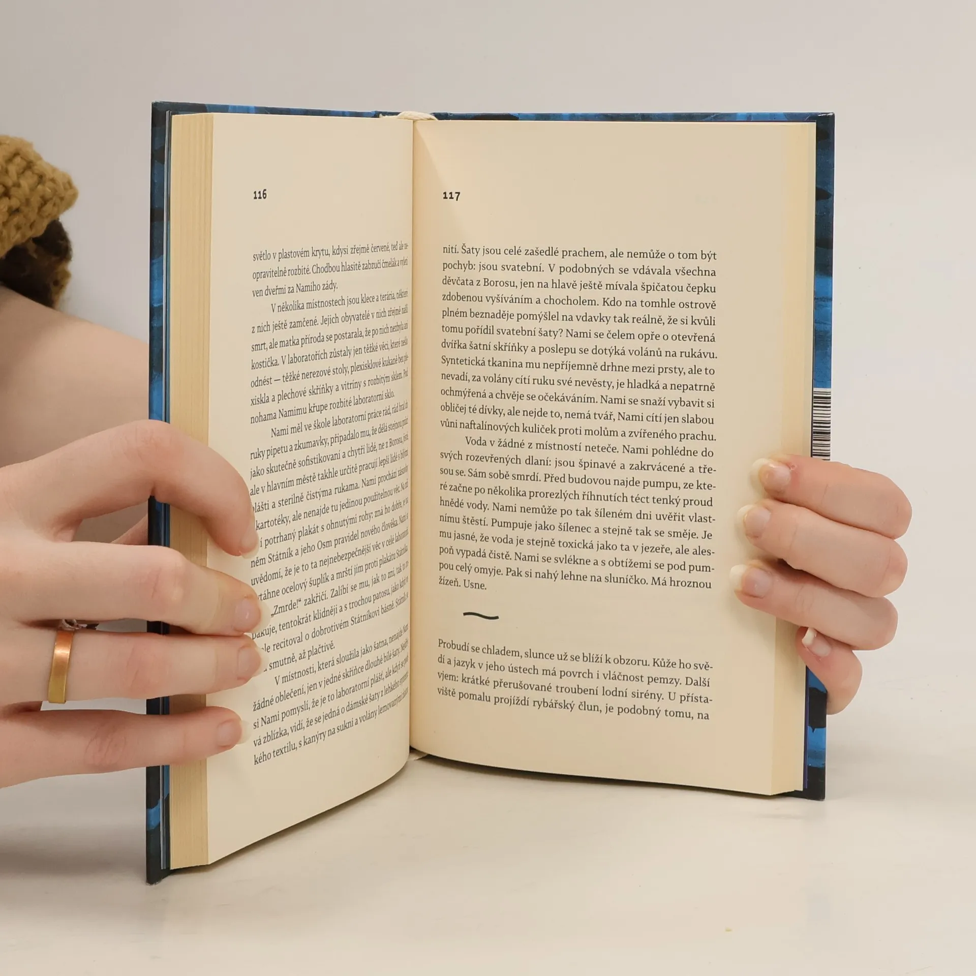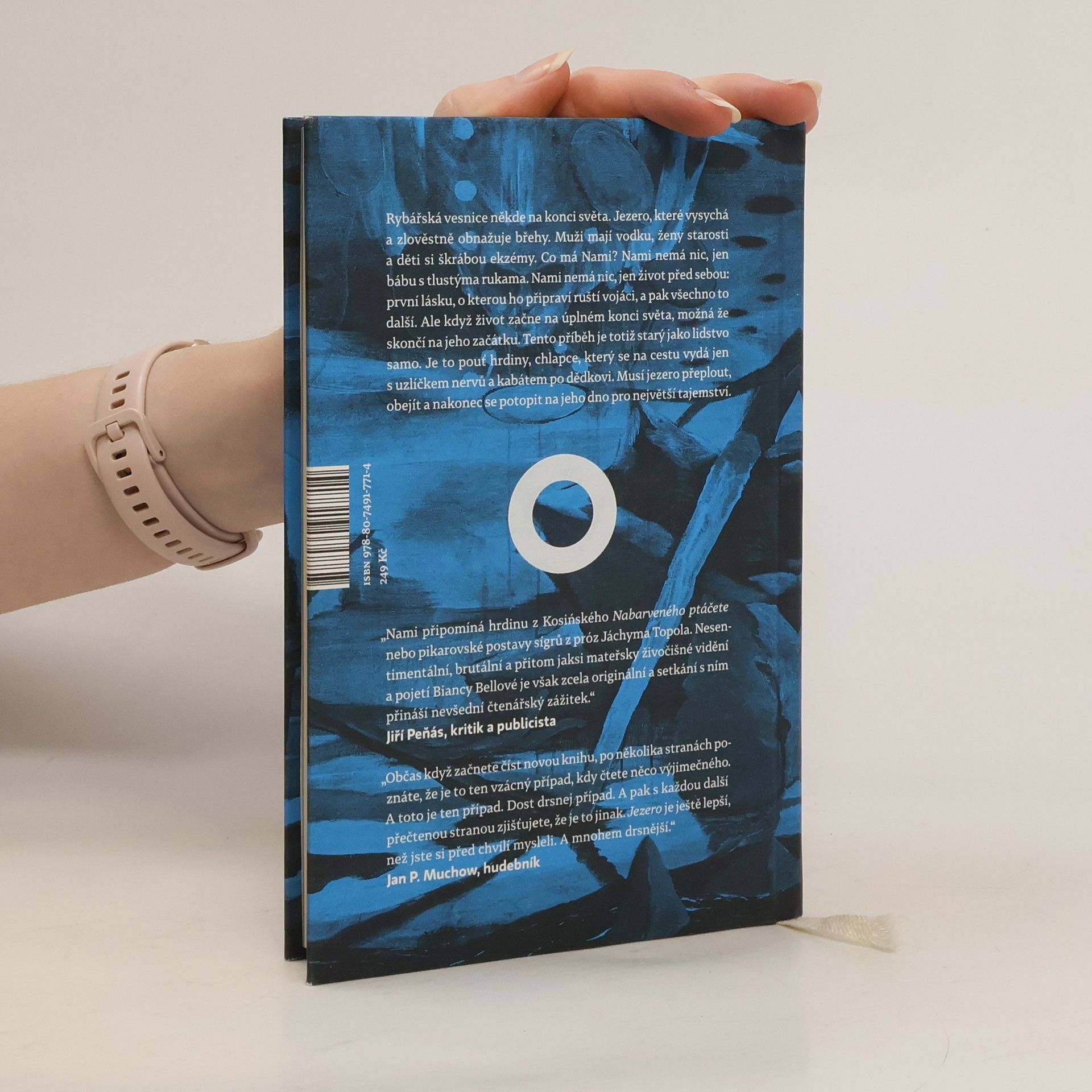 Příběh ze současnosti starý jako lidstvo samo. Rybářská vesnice někde na konci světa, u jezera, které vysychá a zlověstně vyhrnuje břehy. Muži mají vodku, ženy starosti a děti si škrábou ekzémy. Co má Nami? Nami nemá nic — jen bábu s tlustýma rukama. Nami nemá nic, jen život před sebou: první lásku, o kterou ho připraví ruští vojáci, a pak to všechno další. Raději na to nemyslet. Ale když život začne na úplném konci světa, možná že skončí na jeho začátku. Tenhle příběh je totiž starý jako lidstvo samo. Je to pouť hrdiny, chlapce, který na cestu vyráží jen s uzlíčkem nervů a kabátem po dědkovi. Musí do světa, aby hledal, a vrátit se domů, aby našel. Musí jezero přeplout, obkroužit a nakonec se potopit na jeho dno pro největší tajemství. Bianca Bellová napsala brilantní novelu, která se podobá i nepodobá jejím předchozím knihám. Zůstává syrovost vidění, přesný a úsečný jazyk. Ale tentokrát se ocitáme v úplně jiném světě, hutnějším, hlubším, osudovějším. Teprve zde jako by do sebe vše zapadlo. Jezero svými ledovými vodami svírá útroby.