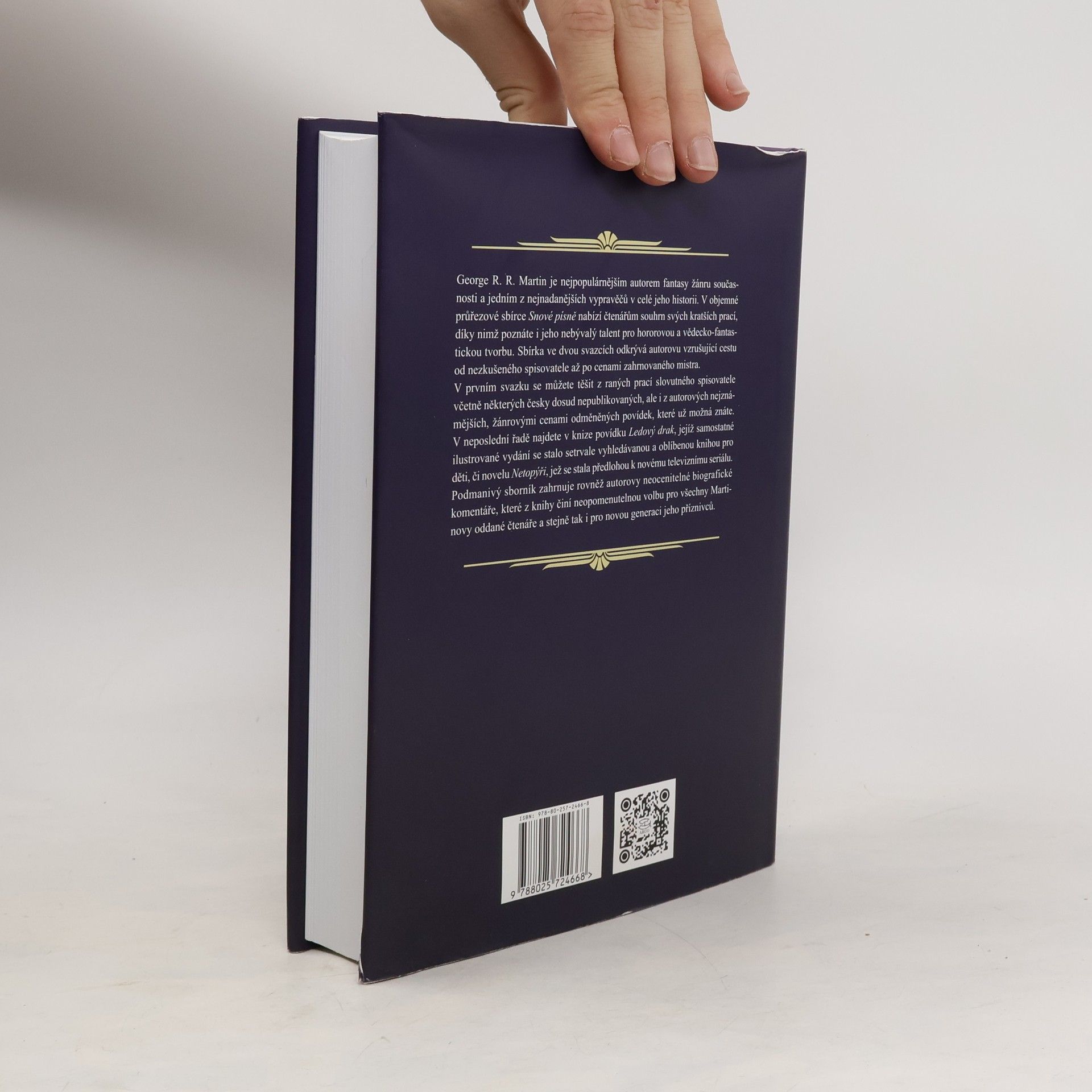 George R. R. Martin je nejvýznamnějším autorem moderní podoby žánru fantasy a jedním z nejnadanějších vypravěčů současnosti. V objemné průřezové sbírce Snové písně nabízí čtenářům souhrn svých kratších prací, jenž ve dvou svazcích odkrývá autorovu vzrušující cestu od mladého spisovatele až po cenami zahrnovaného mistra. V prvním svazku se můžete těšit z raných prací George R. R. Martina včetně některých dosud nikdy nepublikovaných povídek, ale i z Hugem, Nebulou či Cenou Brama Stokera odměněných povídek a v neposlední řadě rovněž z novely Ledový drak, jejíž samostatné ilustrované vydání se stalo stále vyhledávaným bestsellerem mezi dětem určenými tituly. Okouzlující sborník zahrnuje rovněž autorovy obsáhlé komentáře, které z knihy dělají skvělou volbu pro Martinovy oddané čtenáře i pro novou generaci jeho příznivců.