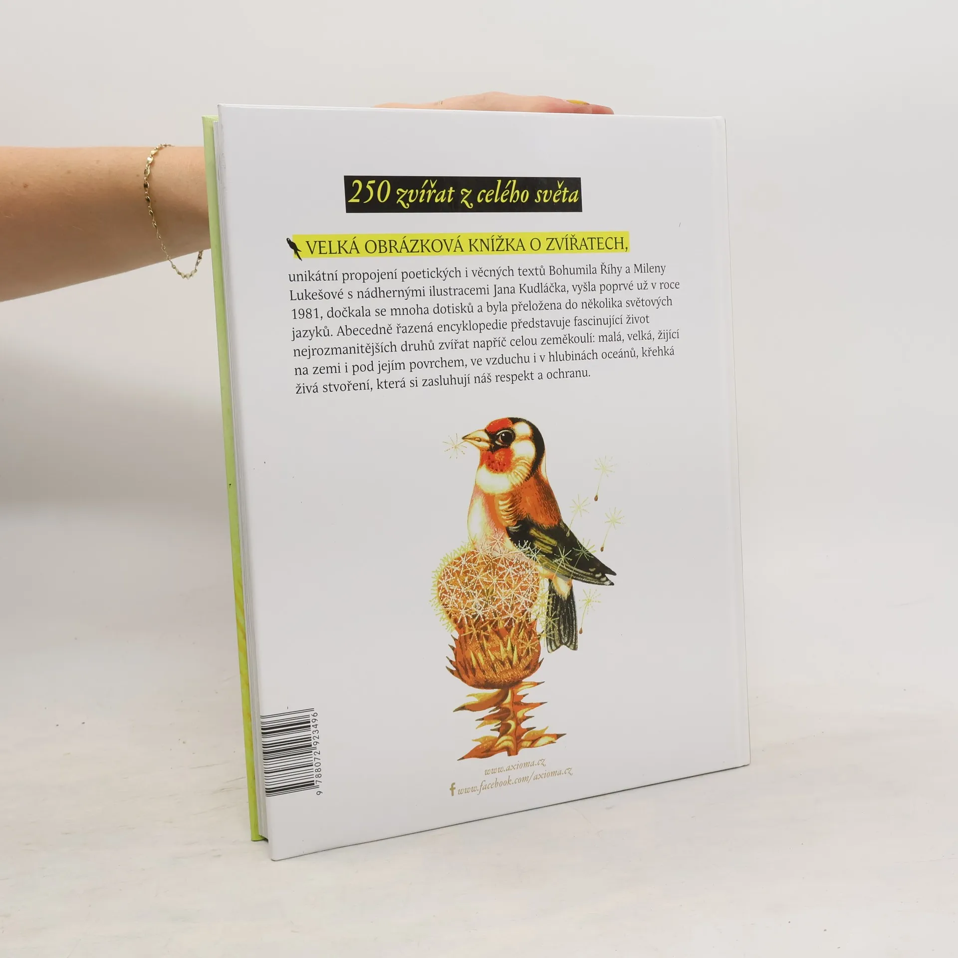 250 zvířat z celého světa. Velká obrázková knížka o zvířatech, unikátní propojení poetických i věcných textů Bohumila Říhy a Mileny Lukešové s nádhernými ilustracemi Jana Kudláčka, vyšla poprvé už v roce 1981, dočkala se mnoha dotisků a byla přeložena do několika světových jazyků. Abecedně řazená encyklopedie představuje fascinující život nejrozmanitějších druhů zvířat napříč celou zeměkoulí: malá, velká, žijící na zemi i pod jejím povrchem, ve vzduchu i v hlubinách oceánů, křehká živá stvoření, která si zasluhují náš respekt a ochranu.