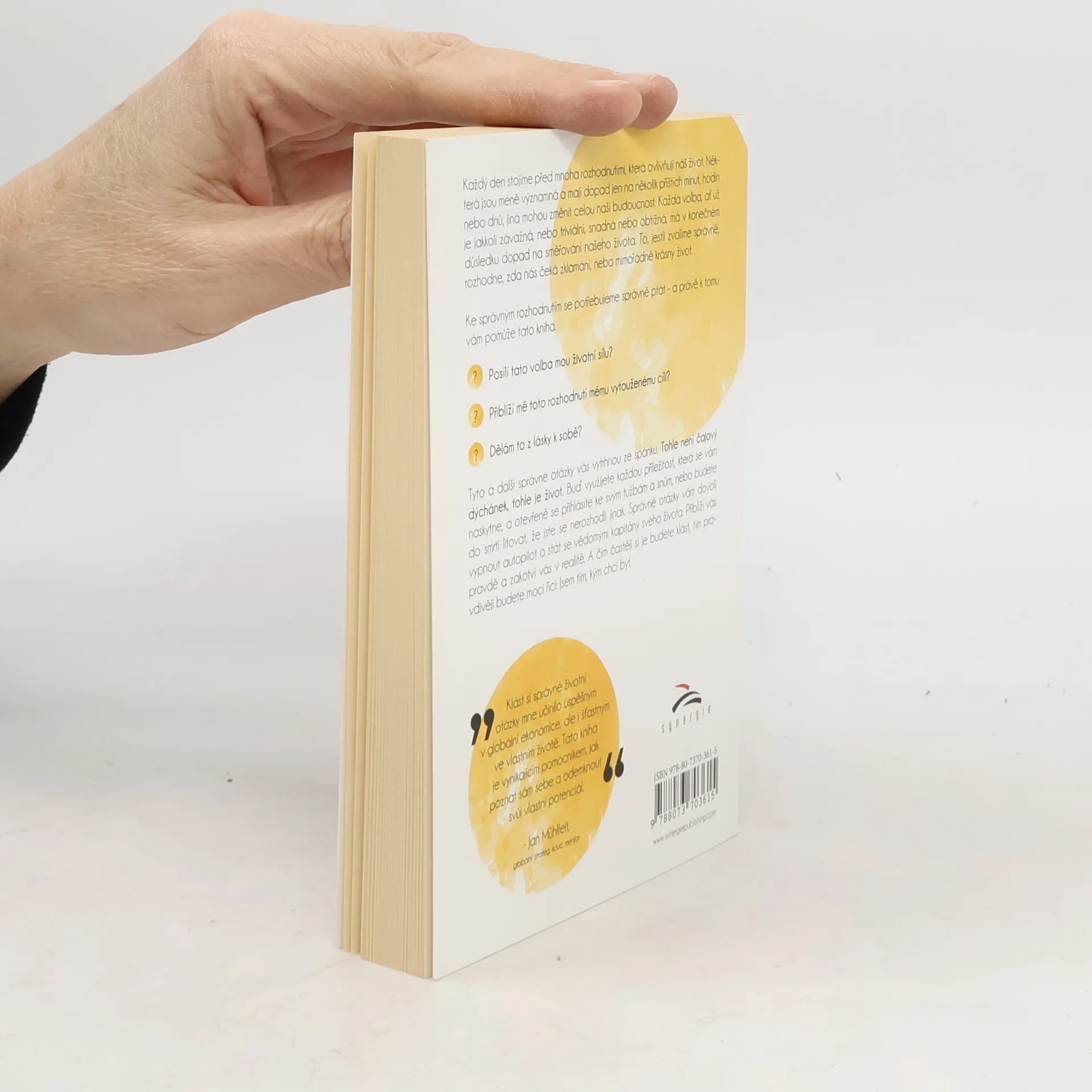 Každý den stojíme před mnoha rozhodnutími, která ovlivňují náš život. Některá jsou méně významná a mají dopad jen na několik příštích minut, hodin nebo dnů, jiná mohou změnit celou naši budoucnost. Každá volba, ať už je jakkoli závažná nebo triviální, snadná nebo obtížná, má v konečném důsledku dopad na směřování našeho života. To, jestli zvolíme správně rozhodne, zda nás čeká zklamání nebo mimořádně krásný život. Ke správným rozhodnutím se potřebujeme správně ptát - a právě k tomu vám pomůže tato kniha. Posílí tato volba mou životní sílu? Přiblíží mě toto rozhodnutí mému vytouženému cíli? Dělám to z lásky k sobě? Tyto a další správné otázky vás vytrhnou ze spánku. Tohle není čajový dýchánek, tohle je život. Buď využijete každou příležitost, která se vám naskytne, a otevřeně se přihlásíte ke svým tužbám a snům, nebo budete do smrti litovat, že jste se nerozhodli jinak. Správné otázky vám dovolí vypnout autopilota a stát se vědomými kapitány svého života. Přiblíží vás pravdě a zakotví vás v realitě. A čím častěji si je budete klást, tím pravdivěji budete moci říci: Jsem tím, kým chci být. Klást si správné životní otázky mne učinilo úspěšným v globální ekonomice, ale i šťastným ve vlastním životě. Tato kniha je vynikajícím pomocníkem jak poznat sám sebe a odemknout svůj vlastní potenciál. - Jan Mühlfeit, globální stratég, kouč, mentor