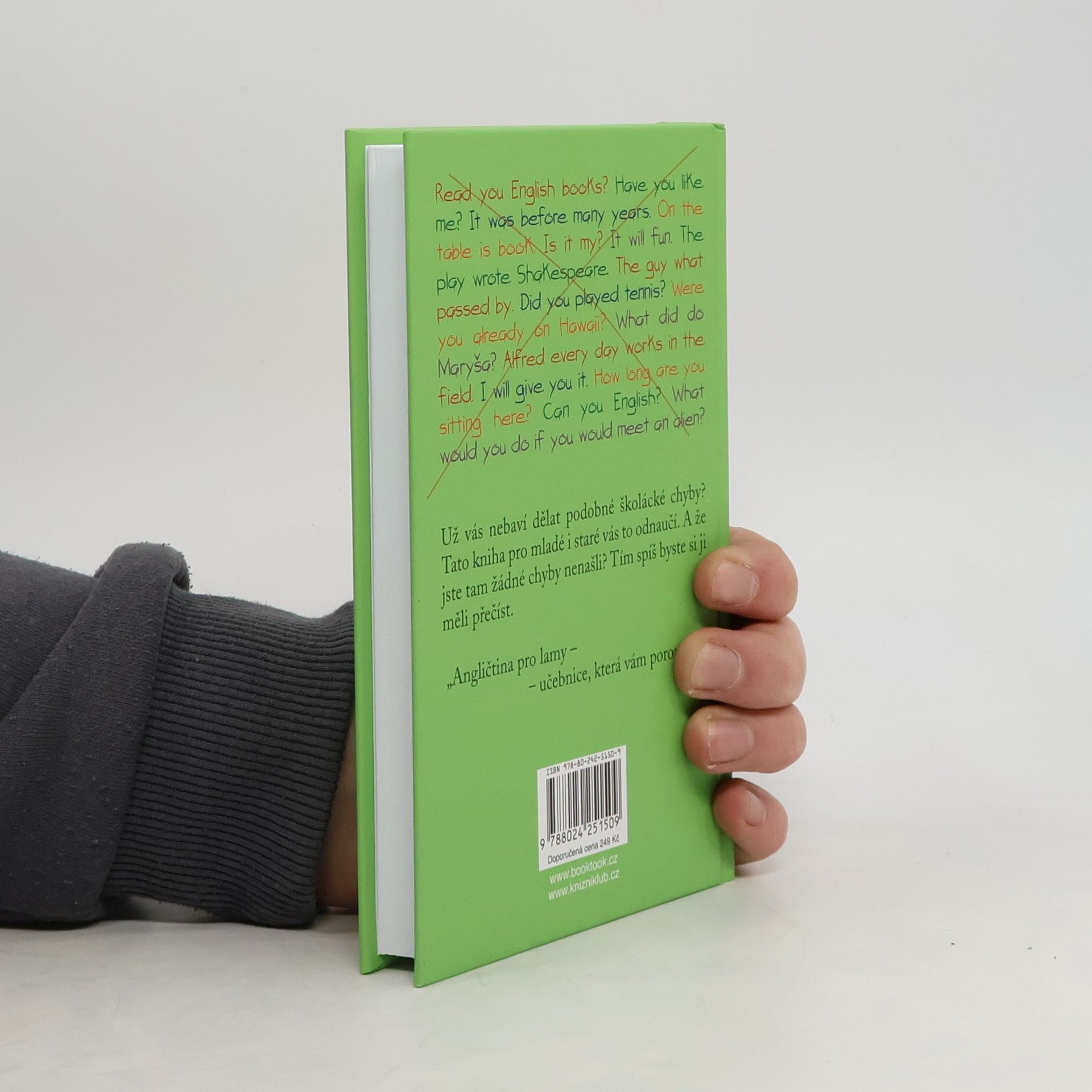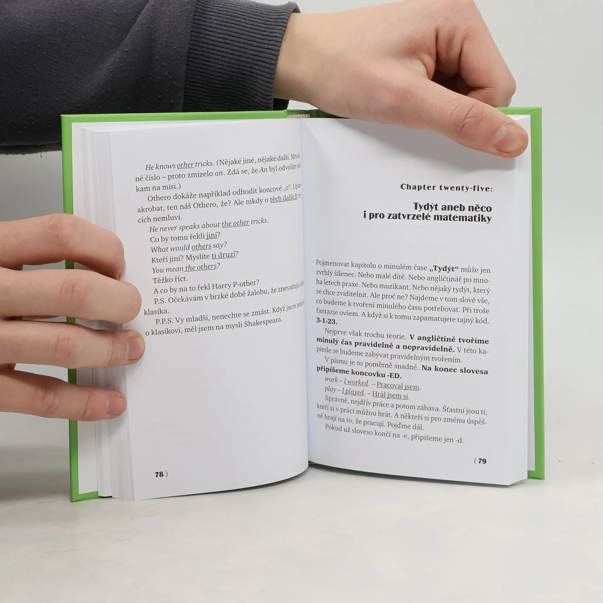 Angličtinář mnohaletou praxí napsal knížku o anglickém jazyce, která je vtipná, a přitom poučná. Oslovit může nejen věčné začátečníky, ale i studenty, kteří mají potíže s tradičními učebnicemi nebo si prostě chtějí něco ujasnit. V krátkých kapitolkách je formou vyprávění a příběhů s mnoha příklady podán ucelený přehled gramatických jevů od úrovně A1 po B2 s důrazem na obvyklé chyby českých studentů. Pro čtenáře od 12 let.