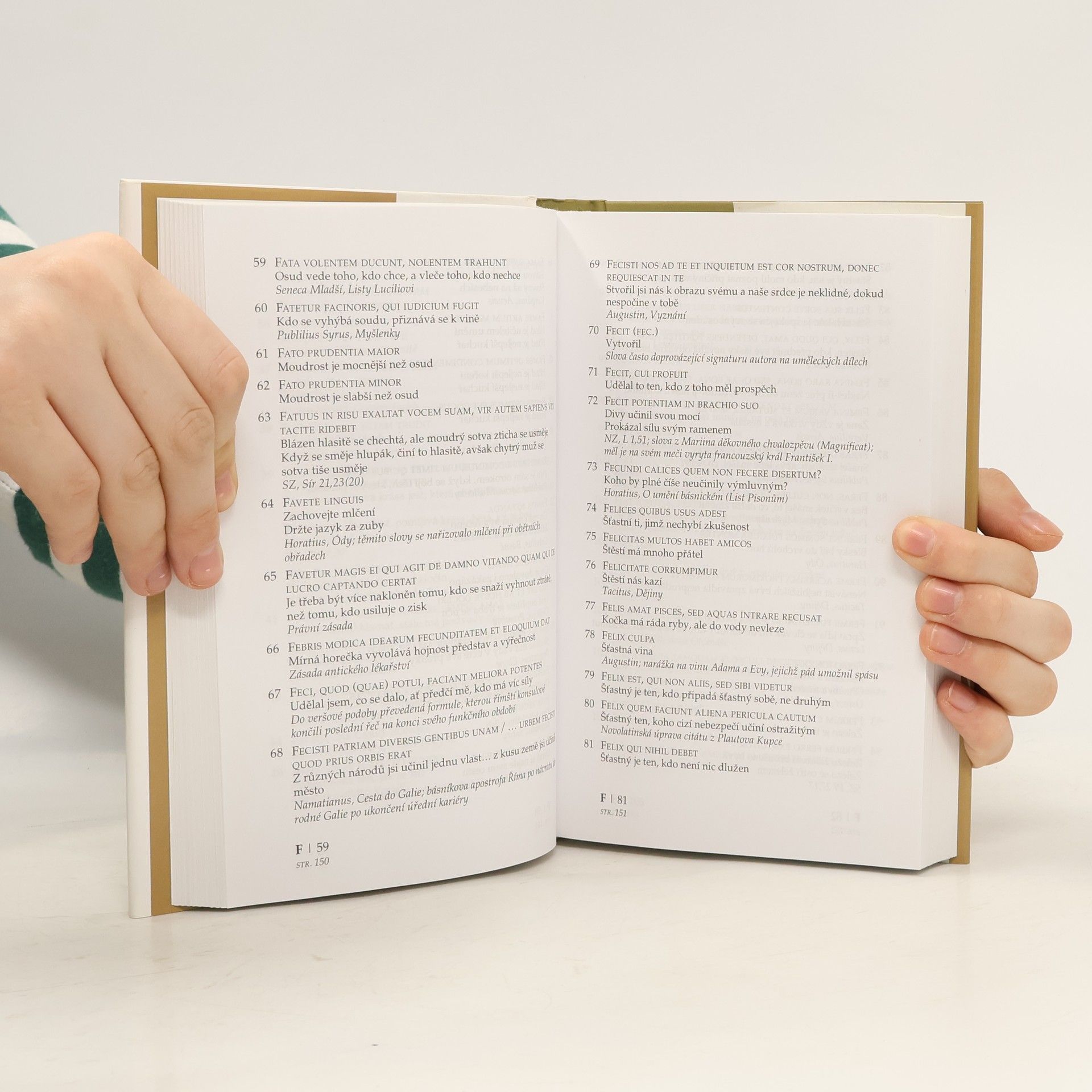 Kniha obsahuje v češtině dosud nejširší publikovaný výběr latinských citátů, rčení a pořekadel, a to v původní latinské podobě i v českém překladu. Více než 4300 záznamů latinské vzdělanosti je kromě abecedního řazení možno vyhledat i podle českého rejstříku či klíčových slov.