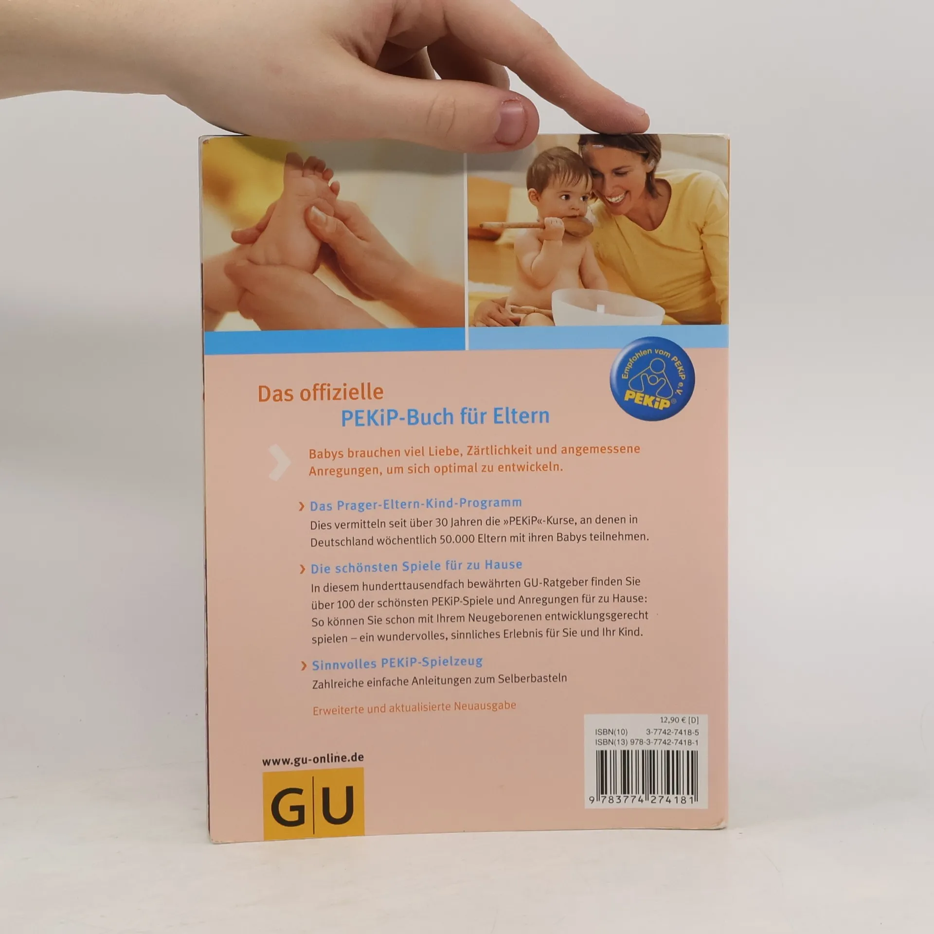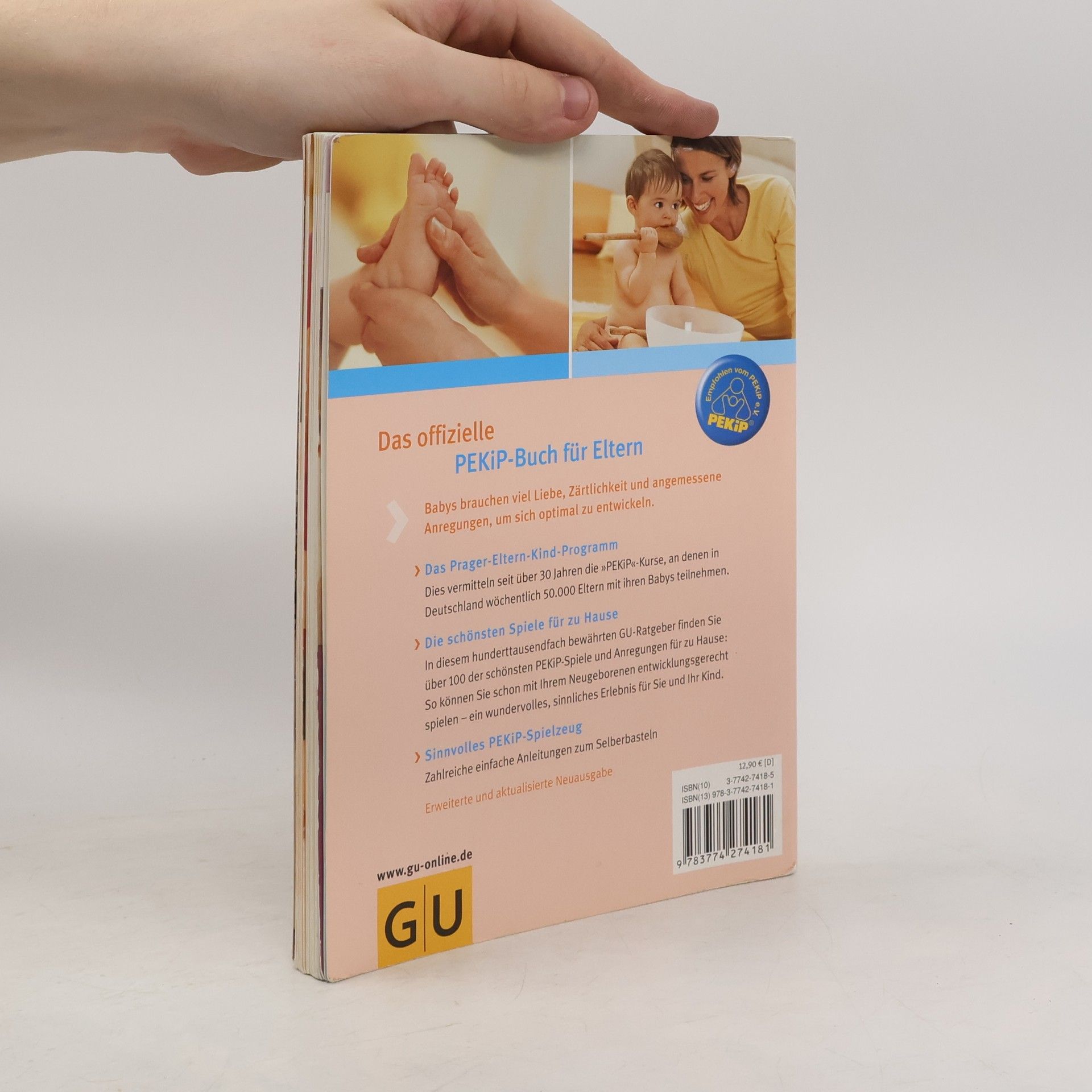 Mit PEKiP, dem ? Prager-Eltern-Kind-Programm?, können Eltern die Entwicklung ihres Babys optimal unterstützen. Der 100.000-fach bewährte GU-Ratgeber zu diesem Thema liegt nun in einer erweiterten Neuauflage vor. Übersichtlich und kompakt er-fahren Eltern zunächst alles Wichtige zur Entwicklung ihres Kindes im ersten Jahr. Mit den jetzt über 100 Spielen und Be-wegungsanregungen, praktisch nach Altersgruppen geordnet, können Eltern mit ihrem Baby zu Hause eine wunderschöne, gemeinsame Spielzeit genießen und gleichzeitig seine Fähigkeiten gezielt fördern. Zahlreiche Anleitungen für sinnvolles Spielzeug zum Selberbasteln runden das Buch ab.Extra: Poster mit den schönsten PEKiP-Spielen