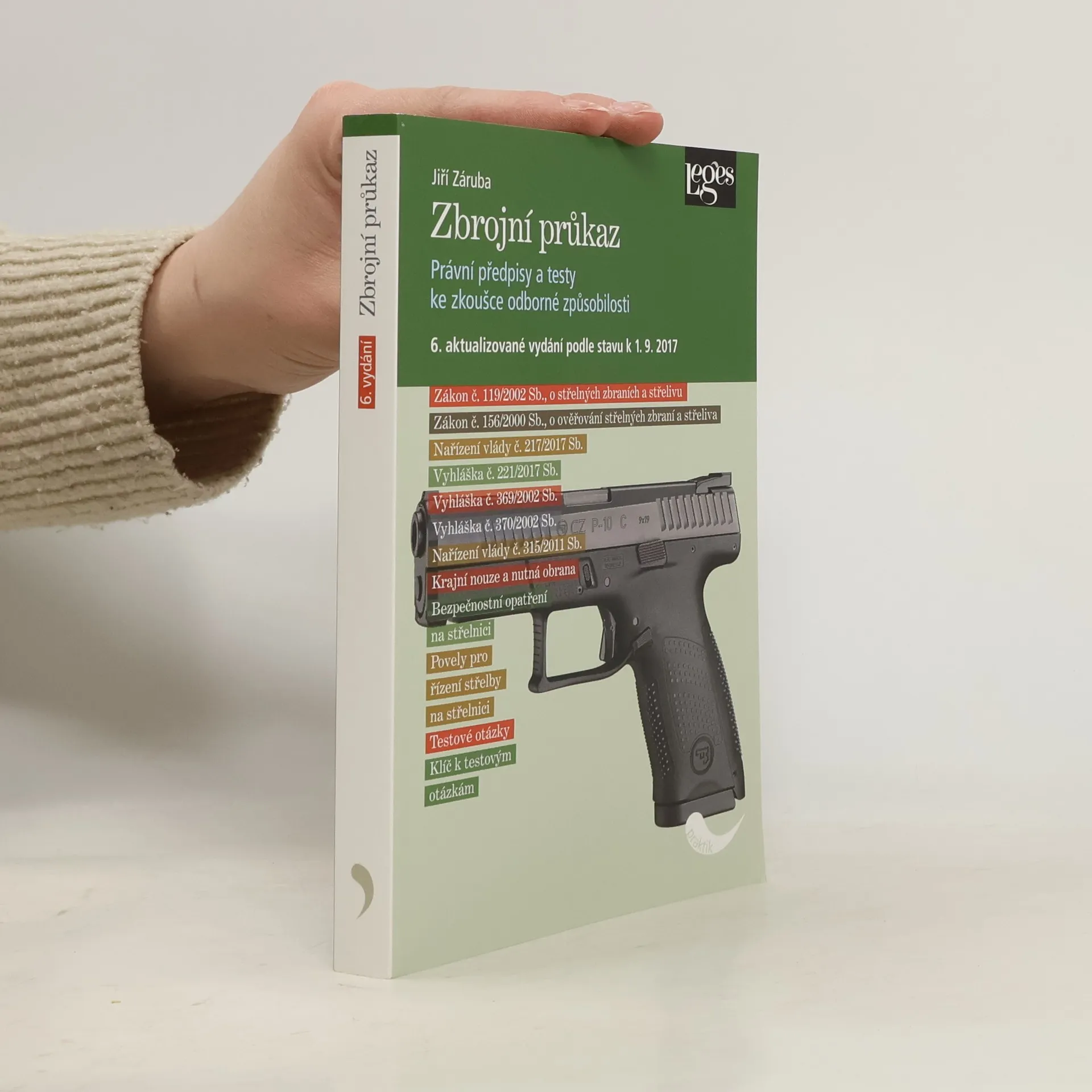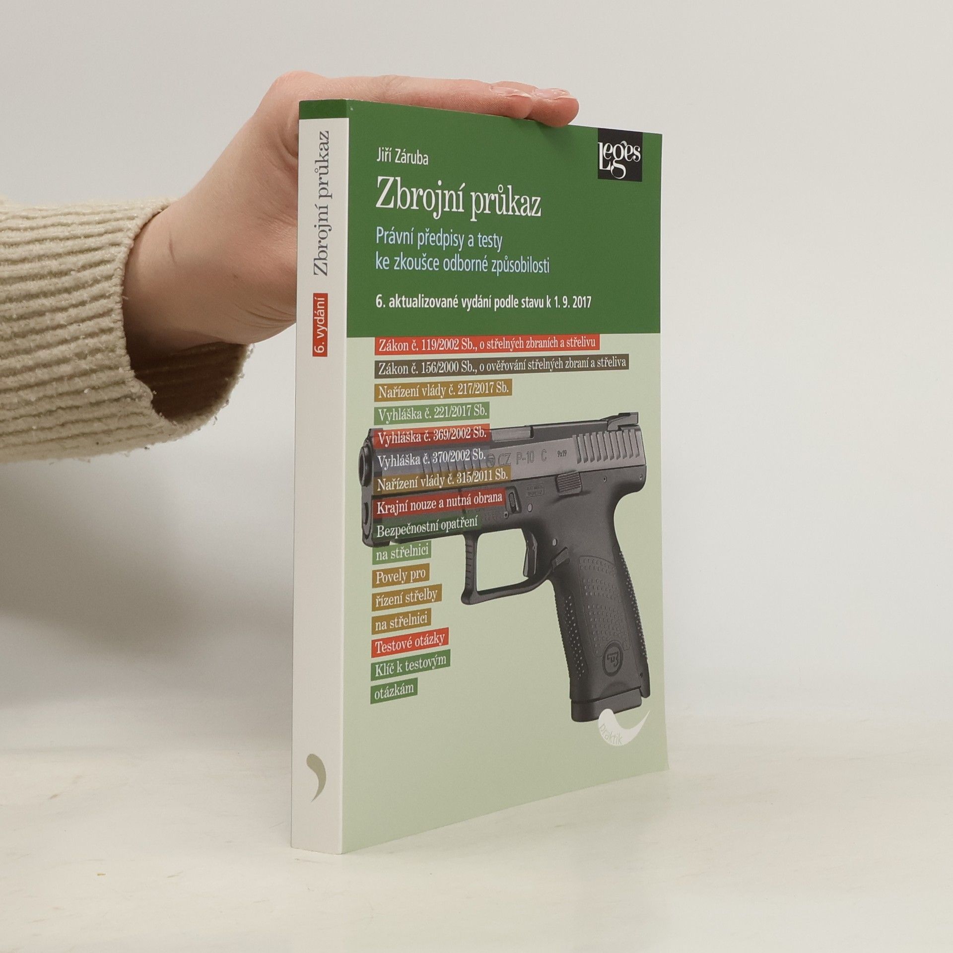 Šesté vydání oblíbené příručky přináší žadatelům o zbrojní průkaz ucelený souhrn všech právních norem, jejichž znalost je nutná k úspěšnému vykonání teoretické části zkoušky odborné způsobilosti. Kniha dále popisuje základní bezpečnostní opatření a zásady bezpečné manipulace se zbraní, jakož i pravidla chování na střelnici. Tyto znalosti jsou jednou z podmínek úspěšného složení zkoušky odborné způsobilosti v praktické části. Právní předpisy byly aktualizovány k 1. 8. 2017 s ohledem na dělenou účinnost novely zákona o zbraních a zákona o ověřování zbraní a střeliva. Nabyté znalosti si může čtenář ověřit na 511 nových testových otázkách. Správné odpovědi nalezne v klíči, který publikaci uzavírá.