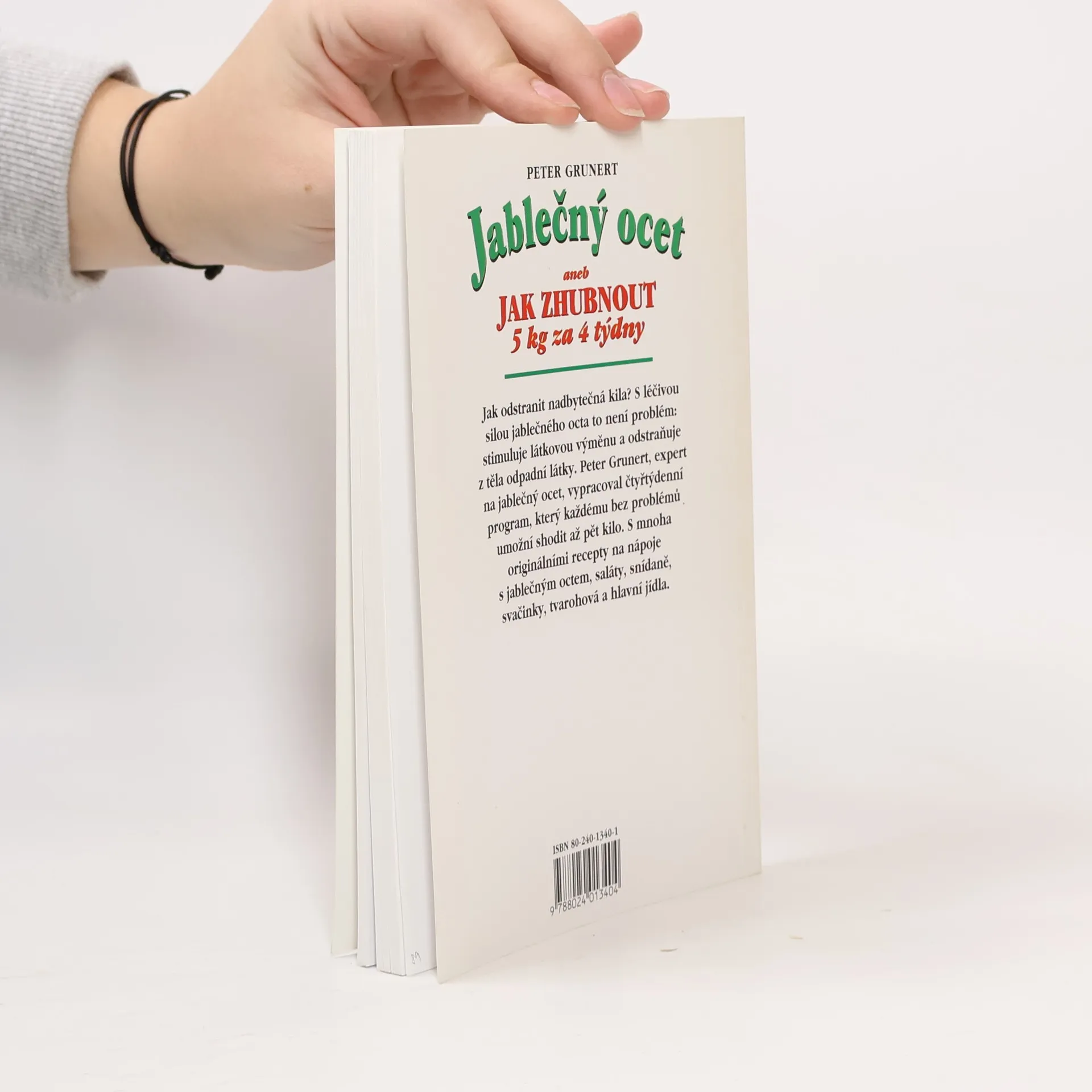 Podtitulek zní : aneb Jak zhubnout 5 kg za 4 týdny. Jak odstranit nadbytečná kila ? S léčivou silou jablečného octa to není problém : stimuluje látkovou výměnu a odstraňuje z těla odpadní látky. Peter Grunert, expert na jablečný ocet, vypracoval čtyřtýdenní program, který každému bez problémů umožní shodit až 5 kilo. S mnoha originálními recepty na nápoje s jablečným octem, saláty, snídaně, svačinky, tvarohová, ale i hlavní jídla.