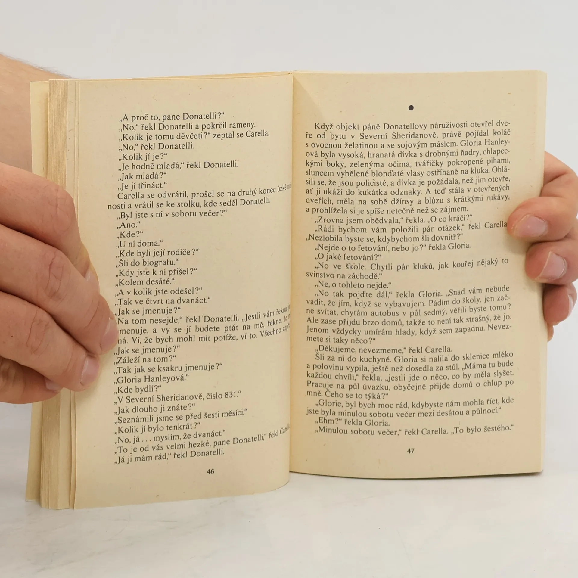 Na policejní stanici přiběhne dívka, skoro ještě dítě; celá zakrvácená, pořezaná na rukou. Zajíkavě vypráví o tom, jak se svou sestřenicí odešla z jakéhosi večírku a přepadl je někdo s nožem... Případu se ujme – jak jinak – Stephen Carella z 87. revíru. Vyslýchá kdejakého pobudu, zvrhlíka, všechny kolem, kdo na uvedenou dobu nemají alibi. Ale samá voda, samá voda... Nakonec nezbývá než důkladně prozkoumat především sociální pozadí všech aktérů, prostředí v rodině, přátele obou dívek, známé. Aby se nakonec ukázalo, že všechno bylo jinak... Edice: Gong 45000 výt.