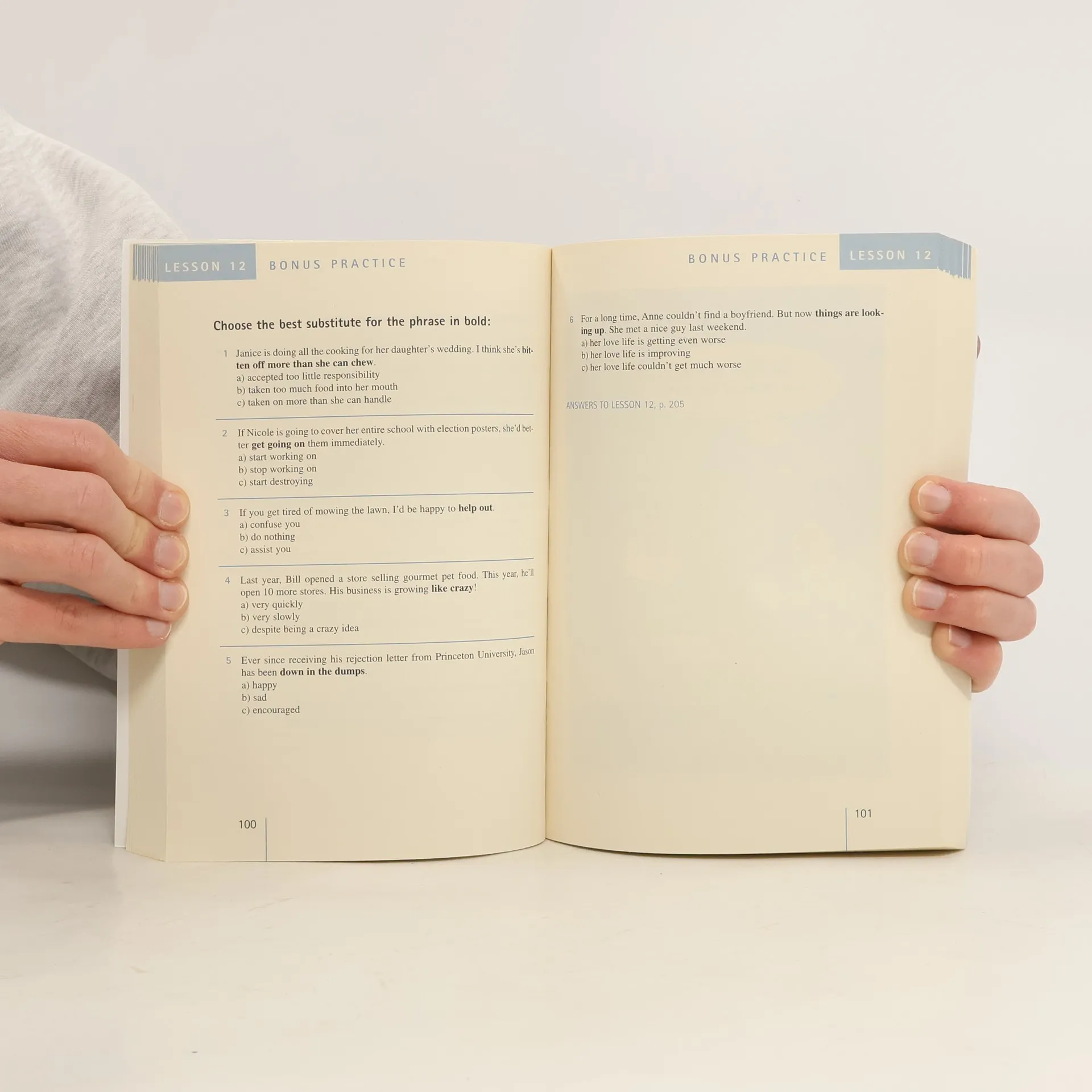 Chcete lépe mluvit i psát, ale také lépe rozumět anglicky? Pak si osvojte idiomatická spojení slovní skupiny se specifickým, často neočekávaným významem, proto se v jejich užívání i porozumění často chybuje. Tato učebnice v 25 lekcích přináší více než 300 nejužívanějších idiomů a idiomatických spojení současné americké angličtiny, které tvoří součást každodenního hovoru rodilého Američana a jsou hojně používány i v médiích. Formou dialogu, výkladu i českého překladu a v desítkách cvičení vám umožní lépe pochopit jejich význam, procvičit si je a osvojit si jejich správné použití. Učebnice je určena studujícím angličtiny (od mírně pokročilých až po velmi pokročilé), kteří si chtějí zdokonalit svůj ústní i písemný projev. (americká idiomatická angličtina pro každý den)