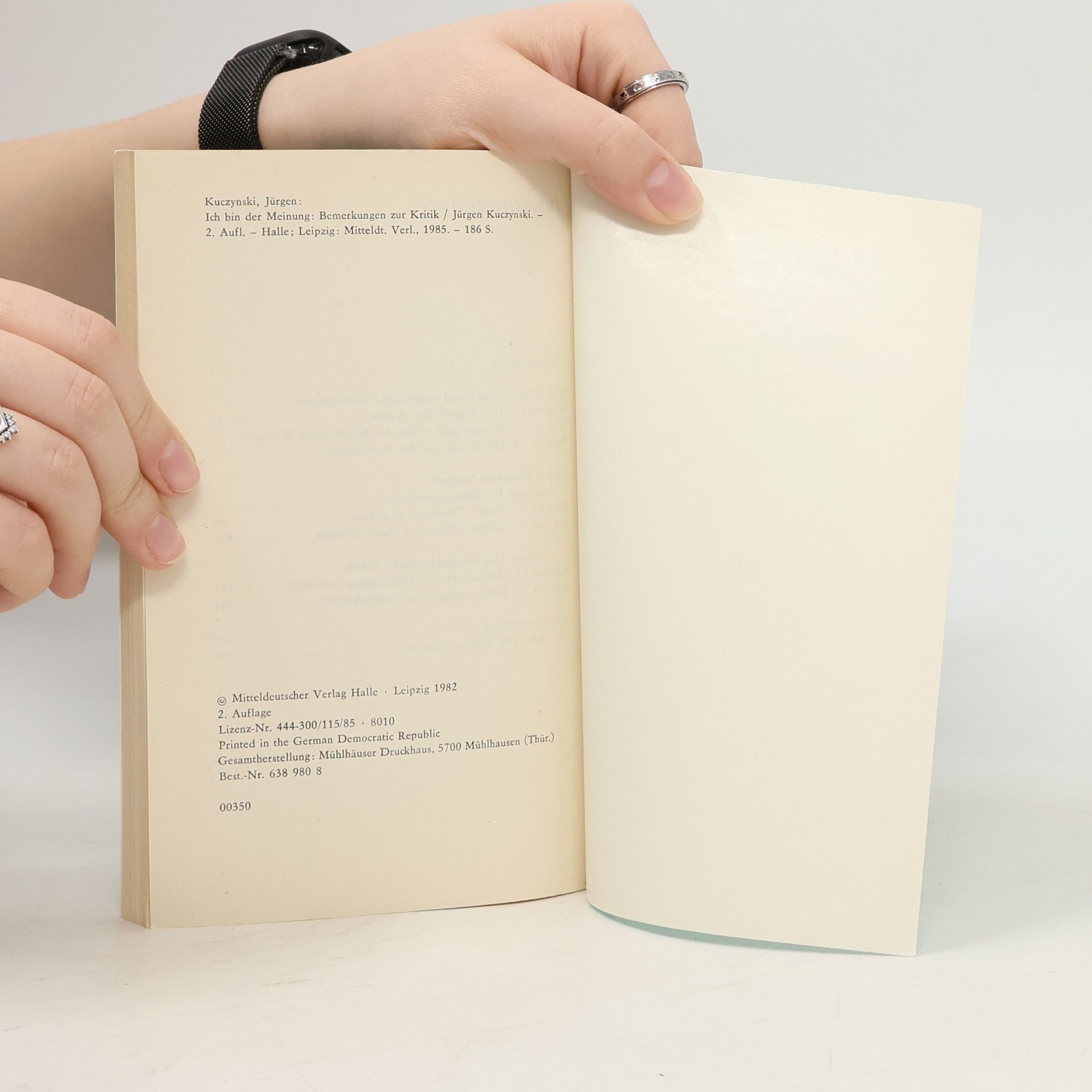 Ich bin der Meinung. Bemerkungen zur Kritik, Jürgen Kuczynski