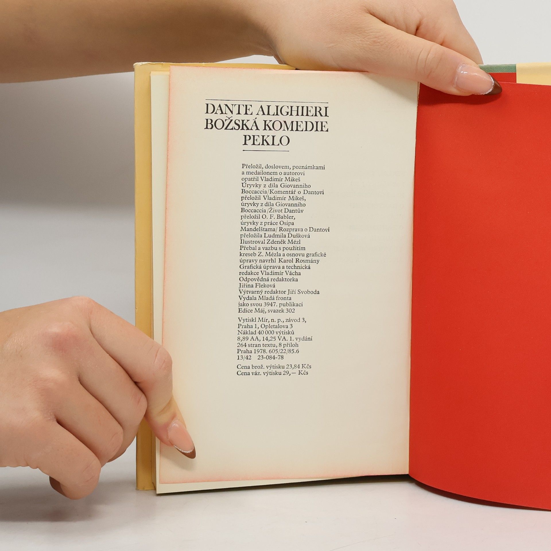 Vstupní, nejproslulejší ze tří dílů proslulé Božské komedie, jednoho ze základních literárních děl, které už osm století upoutává pozornost čtenářů na celém světě. Dante Alighieri (1265-1321), básník a učenec, který mimo jiné stojí u základů spisovného italského jazyka, shrnulve svém nejvýznamnějším, neobyčejně důmyslně komponovaném díle veškeré vědění své doby. Na pouti záhrobní říší, která je symbolickým obrazem lidského života, od prvotního hříchu až po spasení a probuzení k věčnému životu, autora provází římský básník Vergilius. Báseň, napsaná v sugestivních terciích (odpovídajících základnímu principu čísla 3, podle něhož je epos sestaven), je od 19. století výzvou pro nejlepší české překladatele (J. Vrchlického, O. F. Bablera a další). Do této řady patří i nejnovější překlad Vladimíra Mikeše.
