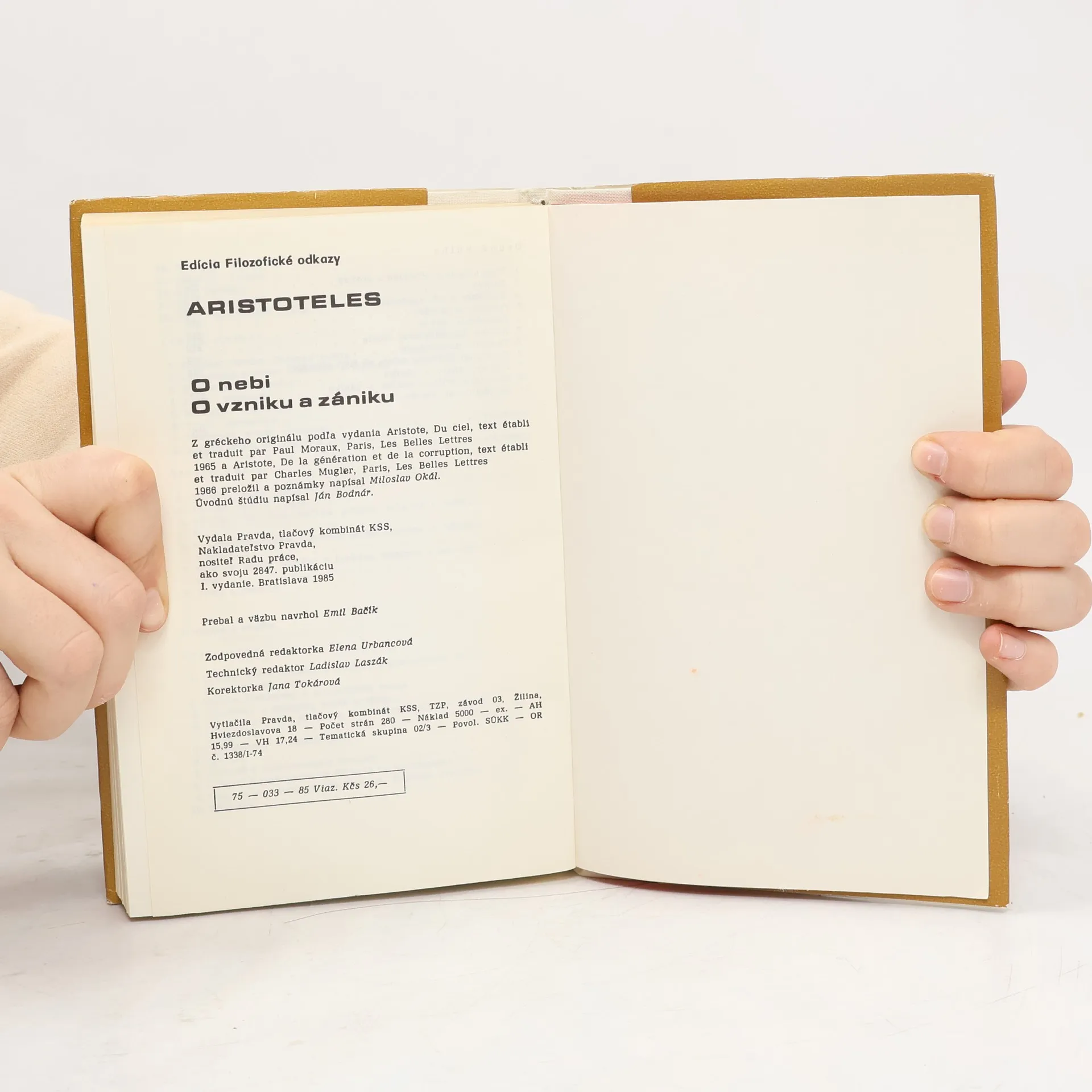 V oboch dielach uvedených v tejto publikácii, O nebi a O vzniku a zániku, sa čitateľ môže oboznámiť s názormi na svet, na vesmír podľa Aristotelových úvah, ale i s názormi jeho predchodcov, ktoré sám Aristoteles skúma, a zároveň môže spoznať, ako zmýšľali starovekí učenci o veciach, ktoré sú nám dnes už oveľa jasnejšie, než tomu bolo za ich čias. Čitateľ má tiež možnosť zamyslieť sa nad staťami objasňujúcimi vznik a zánik vecí či javov a hľadať spolu s Aristotelom všeobecne platné postuláty. Súčasťou publikácie je štúdia Miloslava Okála Aristoteles, jeho život a dielo a štúdia Petra Kuklicu a Ivana Janeka Aristoteles a jeho poznávanie sveta.