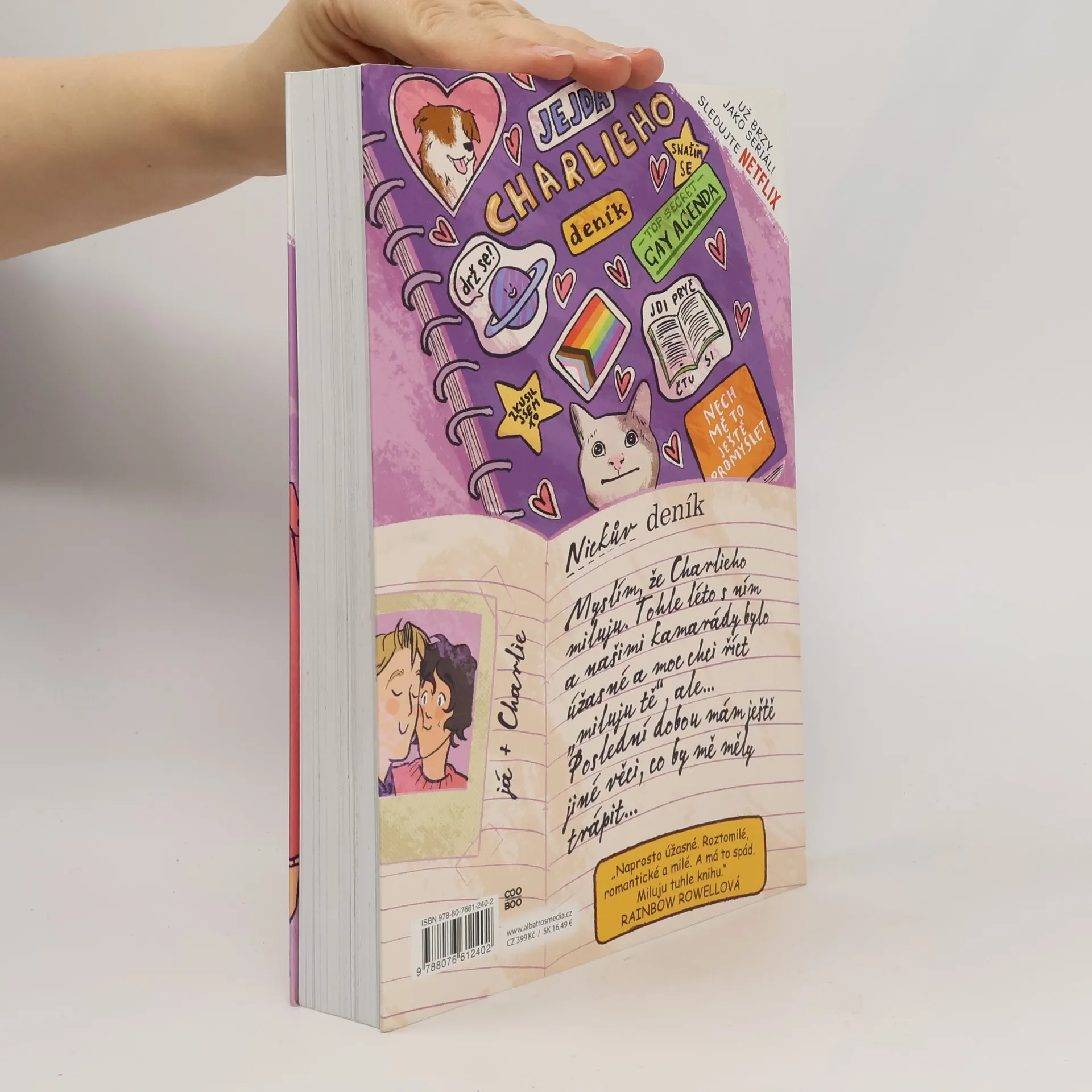 Čtvrtý díl úspěšné série komiksových románů o lásce, životě a o všem, co se stane mezi tím. Charlie si nikdy nemyslel, že by se Nickovi vůbec mohl líbit, ale teď spolu oficiálně chodí a Charlie pomalu začíná být připravený na to, aby vyslovil ta dvě slůvka: Miluju tě. Nick se cítí podobně, ale má toho v hlavě spoustu dalšího – třeba vyoutovat se před svým tátou a pak je tu taky ještě podezření, že Charlie možná trpí poruchou příjmu potravy. Z léta je podzim a začíná nový školní rok a Charlie s Nickem poznávají, co všechno může láska znamenat. Srdcerváči jsou příběhem o lásce, přátelství, věrnosti, ale také o duševní chorobě. Ve střípcích příběhu Nicka a Charlieho se najde každý z nás