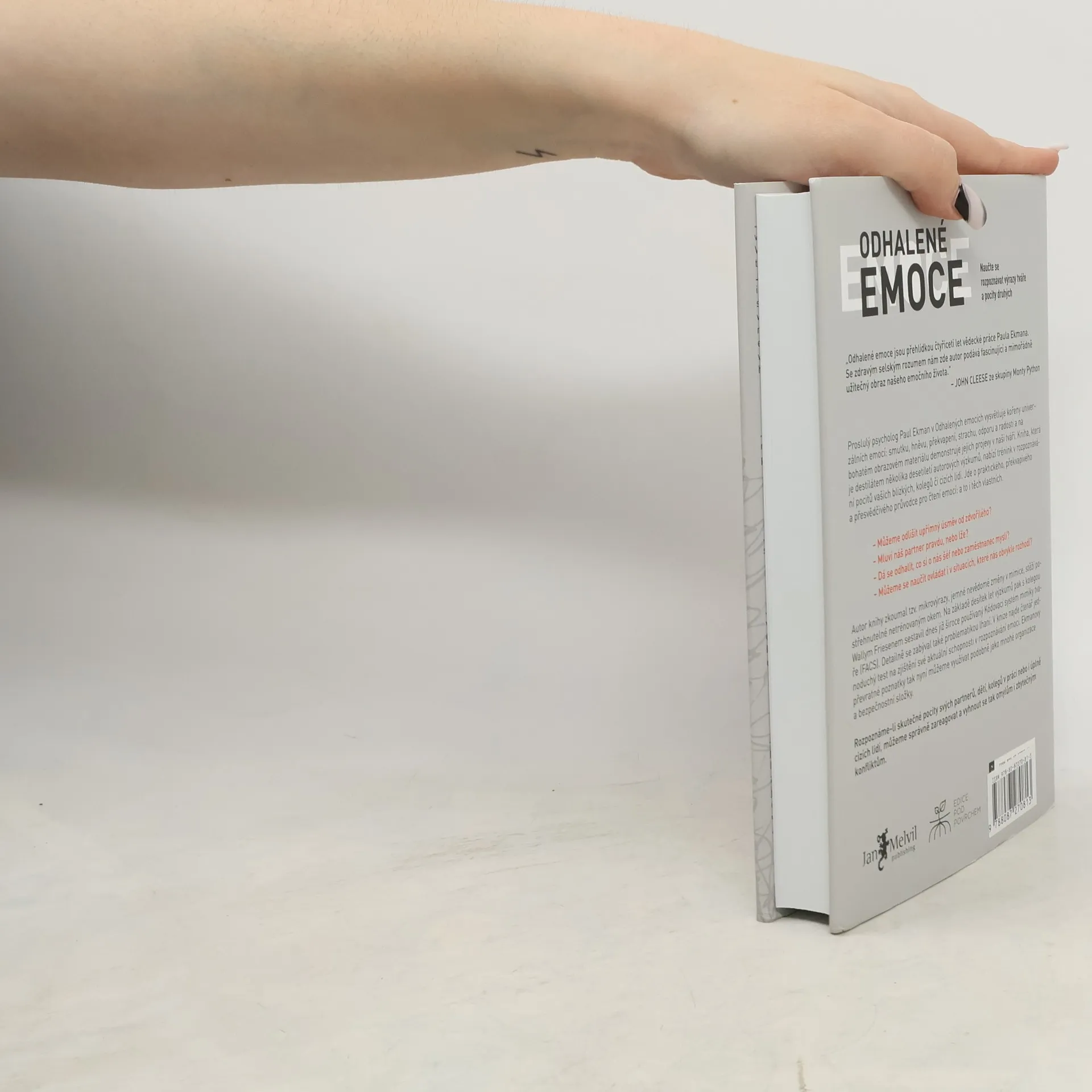 Proslulý psycholog Paul Ekman v Odhalených emocích vysvětluje kořeny univerzálních emocí: smutku, hněvu, překvapení, strachu, odporu a radosti a na bohatém obrazovém materiálu demonstruje jejich projevy v naší tváři. Kniha, která je destilátem několika desetiletí autorových výzkumů, nabízí trénink v rozpoznávání pocitů vašich blízkych, kolegů či cizích lidí. Jde o praktického, překvapivého a přesvědčivého průvodce pro čtení emocí: a to i těch vlastních. Rozpoznáme-li skutečné pocity svých partnerů, dětí, kolegů v práci nebo i úplně cizích lidí, můžeme správně zareagovat a vyhnout se tak omylům i zbytečným konfliktům.