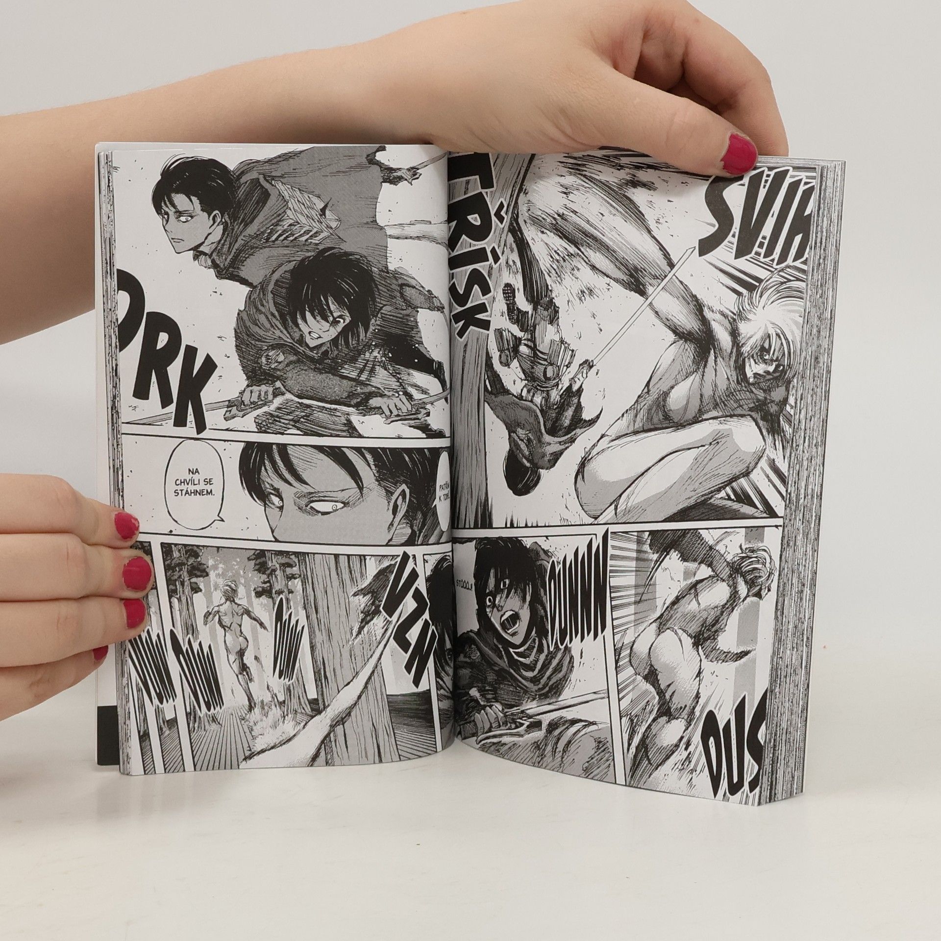 Souboj s titánkou vrcholí a Mikasa i Levi budou muset nasadit všechny páky, aby dosáhli vytyčeného cíle a získali zajatce z řad výjimečných Titánů, který by jim pomohl objasnit tajemství těchto krutých tvorů. V ceně je totiž nejen Erenova svoboda, ale i osud celého lidstva.