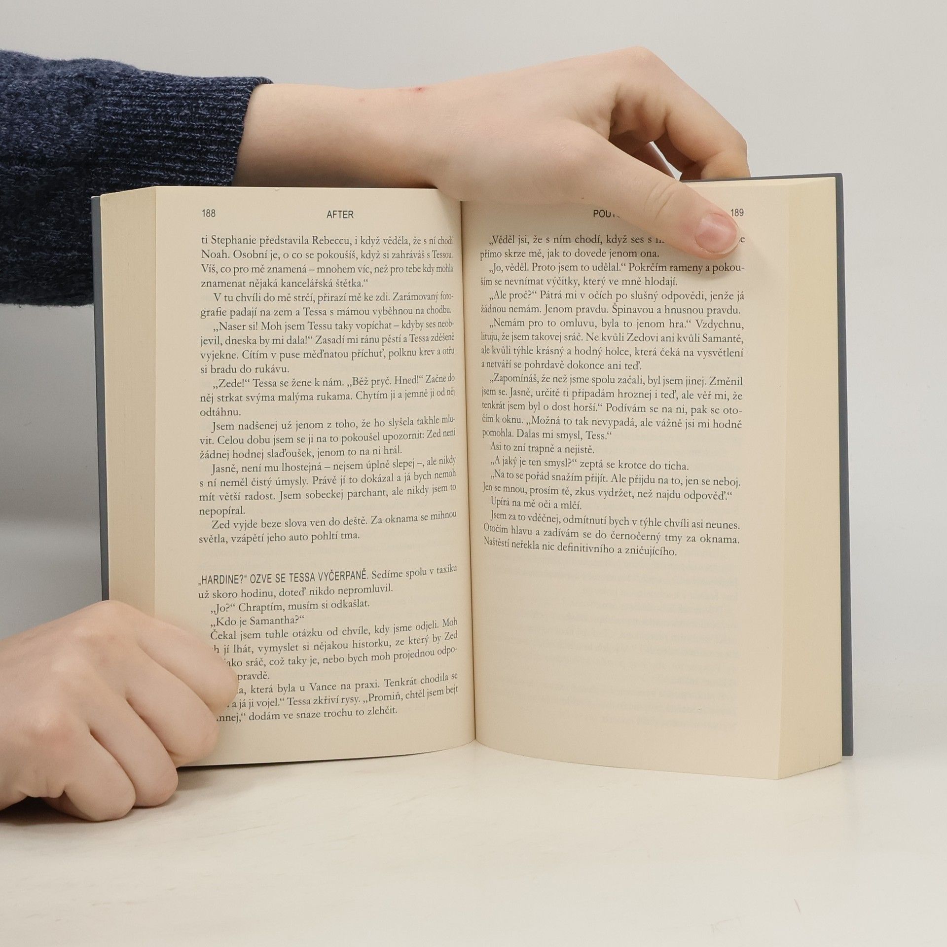 Život Tessy a Hardina je plný překvapení. Jejich vztah je osudový, přestože neustále zkoušený další a další překážkou, které se jim staví do cesty. Šokující pravdy o obou rodinách, které vyplavaly na povrch, nasvědčují, že mezi milenci není velký rozdíl. Tessa už dávno není milá, naivní a poslušná dívka, kterou byla, když poznala Hardina, právě tak jako on už není nemilosrdný, mrzutý potížista, do kterého se bezhlavě zamilovala. Tessa má pro jeho výbušnou povahu pochopení a jako jediná dokáže utišit jeho rozbouřené emoce. Hardin Tessu potřebuje. Čím víc pravdy o jeho minulosti však vychází na světlo, tím víc se poddává démonům své minulosti a Tessu i ostatní blízké od sebe odhání. Tessa se už vzdává naděje, že ho dokáže zachránit. Jedině že by obětovala samu sebe. Stojí jí však láska za tak vysokou cenu? Tessa se odmítá vzdát bez boje. Za koho však ve skutečnosti bojuje? Za Hardina, anebo za sebe samu? Čtvrtá kniha z úspěšné série AFTER, která se stala literárním fenoménem všech dob a dočkala se více než miliardy přečtení online.