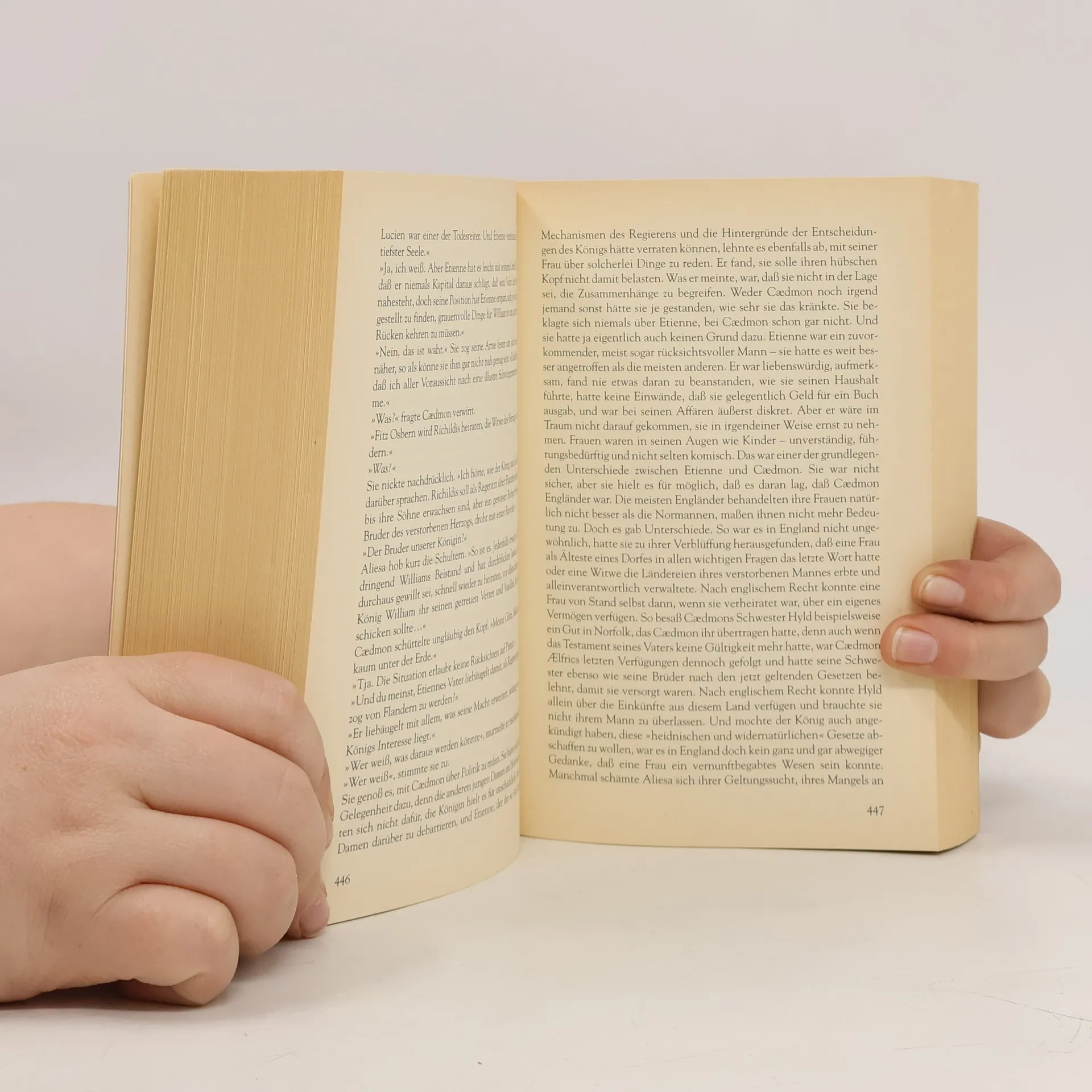 Klar, Gablé kann schreiben, keine Frage. Man merkt sofort, wie gründlich sie recherchiert hat. Die Schauplätze wirken gelungen, die Figuren echt, und man taucht ziemlich tief ins 11. Jahrhundert ein. Aber zwischen all den historischen Details bleibt die Geschichte stellenweise ein bisschen fad. Es ist einfach sehr, sehr viel, und es fehlt an echten Höhepunkten und Spannungsmomenten. Und manchmal hatte ich das Gefühl, Gablé verliert sich ein bisschen in den politischen Feinheiten und Machtspielchen. Cædmon, der Protagonist, war für mich aber ein echter Lichtblick. Ein Typ, der zwischen zwei Welten steht: zu englisch für die Normannen, zu normannisch für die Engländer. Das fand ich spannend, weil er so vielschichtig und menschlich ist. Er will das Richtige tun, weiß aber oft selbst nicht genau, was das eigentlich ist. Trotzdem: 900 Seiten sind eine Ansage. Nicht jede davon war für mich nötig. Manche Kapitel ziehen sich, und die großen Highlights bleiben ein bisschen aus. Es gibt zwar Schlachten, Intrigen und auch eine Liebesgeschichte, aber so richtig gepackt hat mich das alles nicht. Eher solide erzählt, aber selten mitreißend. Ich will’s aber auch gar nicht schlechtreden, Gablé versteht ihr Handwerk, keine Frage. Sie kann Atmosphäre, sie kann Figuren, und sie kann historische Genauigkeit, wie kaum jemand sonst. Nur für mich persönlich war’s stellenweise etwas zu ausufernd.