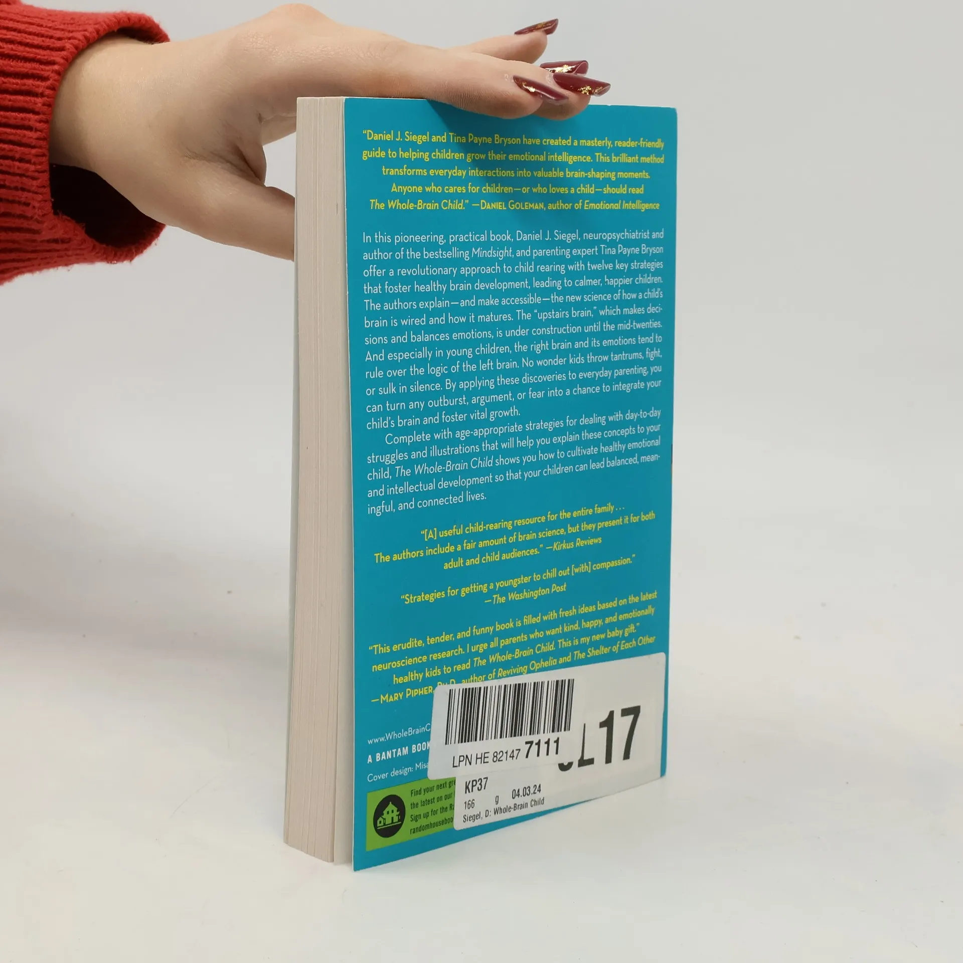 "In this pioneering, practical book, Daniel J. Siegel, neuropsychiatrist and author of the bestselling Mindsight, and parenting expert Tina Payne Bryson offer a revolutionary approach to child rearing with twelve key strategies that foster healthy brain development, leading to calmer, happier children. The authors explain--and make accessible--the new science of how a child’s brain is wired and how it matures. The ‘upstairs brain,’ which makes decisions and balances emotions, is under construction until the mid-twenties. And especially in young children, the right brain and its emotions tend to rule over the logic of the left brain. No wonder kids throw tantrums, fight, or sulk in silence. By applying these discoveries to everyday parenting, you can turn any outburst, argument, or fear into a chance to integrate your child’s brain and foster vital growth. Complete with age-appropriate strategies for dealing with day-to-day struggles and illustrations that will help you explain these concepts to your child, The Whole-Brain Child shows you how to cultivate healthy emotional and intellectual development so that your children can lead balanced, meaningful, and connected lives"--Publisher's website