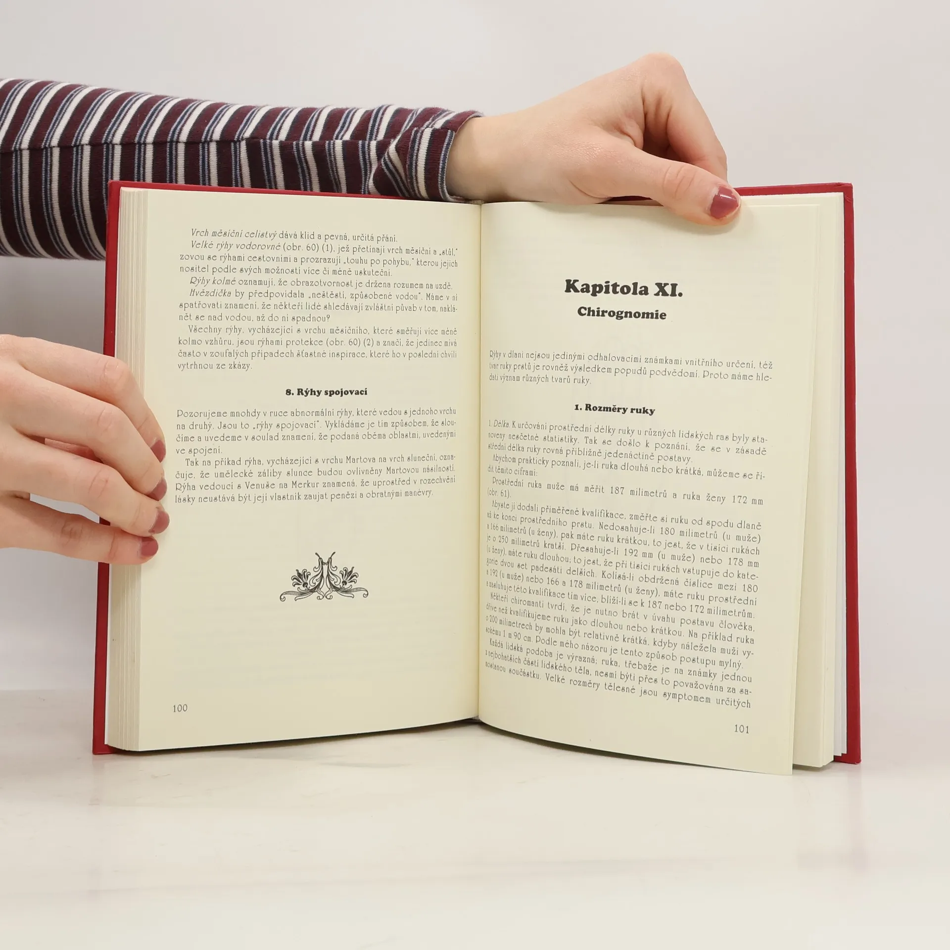 Čtení z ruky je prastará nauka o tom, jak z čar, znaků a tvaru ruky poznat osobnost člověka, jeho sklony a schopnosti, povahu, osud, vztahy, zdravotní stav. Z obsahu: Máme svou budoucnost v rukou?, Rýha osudu neboli Saturnova, Rýha životní, Rýha srdeční, Rýha hlavní, Rýha Merkurova, Rýha sluneční, Rýhy podružné, Vrchy a rýhy regionální, Příčné rýhy zamilovanosti, Chirognomie, Palec, Prsty, Nehty, Znamení štěstí, Smělé předpovědi chiromancie, Umění předpovídat budoucnost, Úloha a povinnosti chiromanta. ... celý text