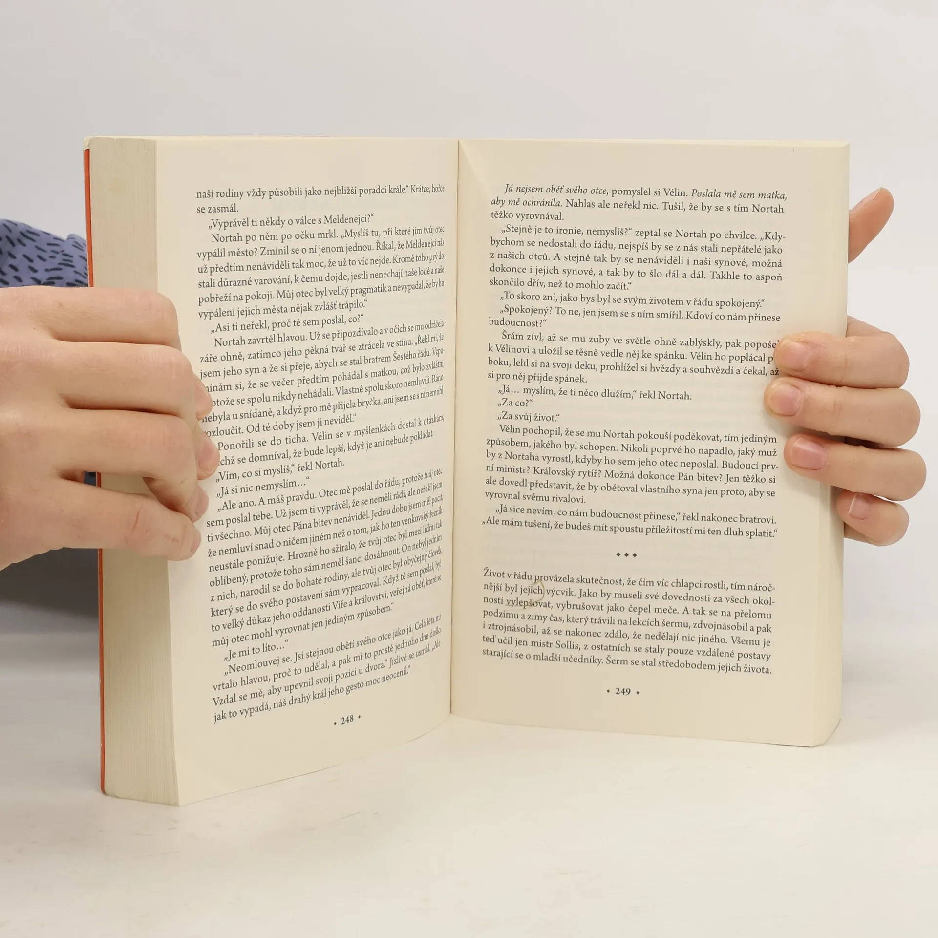 Vélin Al Sorna, zasvěcený Šestému řádu, byl od dětství cvičen k boji a zabíjení ve službách Víry. Řád se stal jeho jedinou rodinou. Vélinův otec sloužil jako rytíř králi Janusovi, panovníkovi Sjednoceného království, rozhodl se však Vélina zbavit jeho práv a v pouhých deseti letech ho zanechal na prahu Šestého řádu. Chlapec ho za to nenávidí. Během pobytu v řádu se Vélin dozvídá zatím netušené podrobnosti o své matce, která zemřela, když byl ještě dítě. Postupně také odhaluje důvody, jež jeho otce vedly k tomu, že ho řádu svěřil. Jedna pravda je však důležitější než všechny ostatní: Vélina Al Sornu čeká budoucnost, kterou má teprve pochopit. Budoucnost, jež změní nejen království, ale také celý svět. Ceny Akademie science fiction, fantasy a hororu za rok 2014 — Nominace v kategorii Nejlepší fantasy a horor ----- Dotisk v roce 2018.