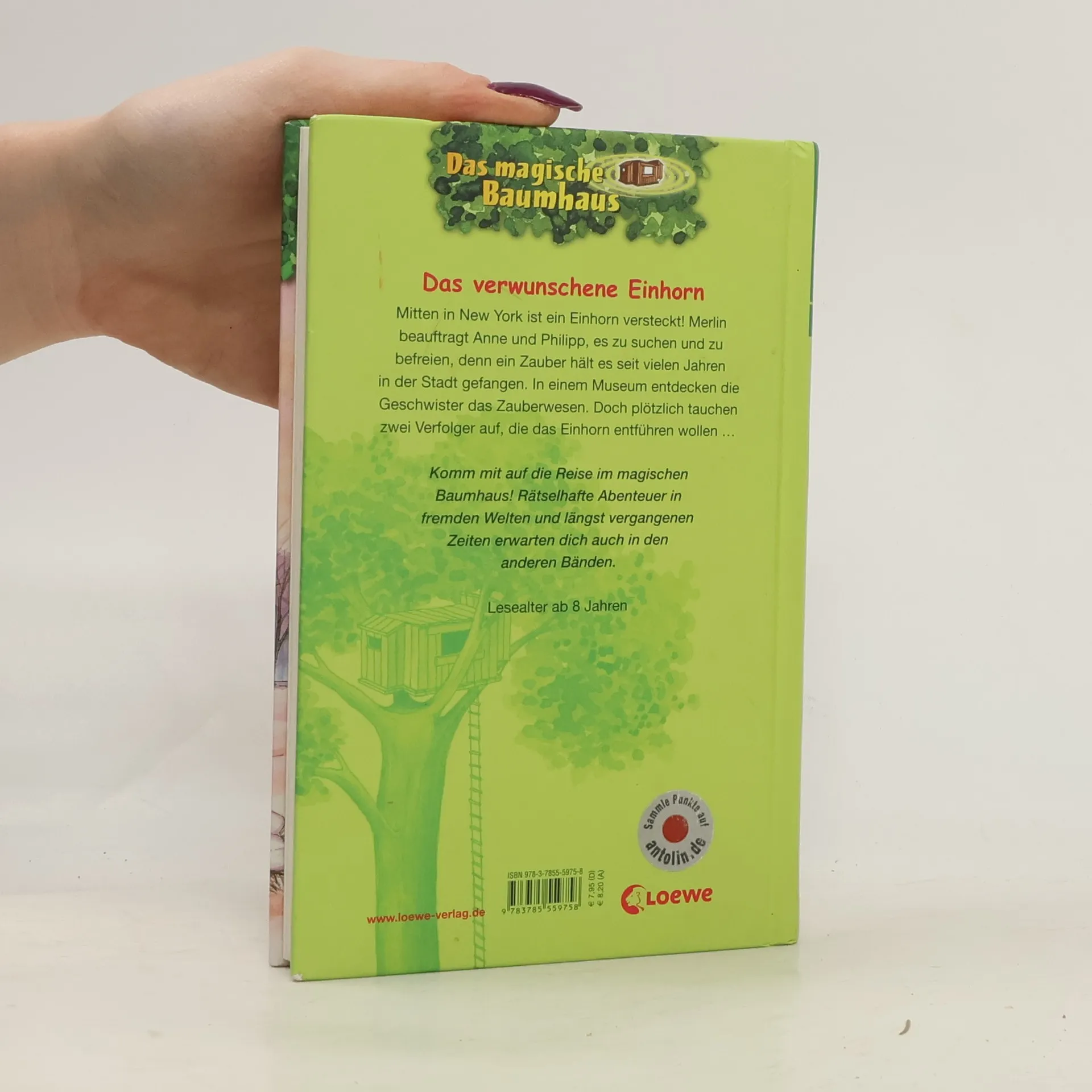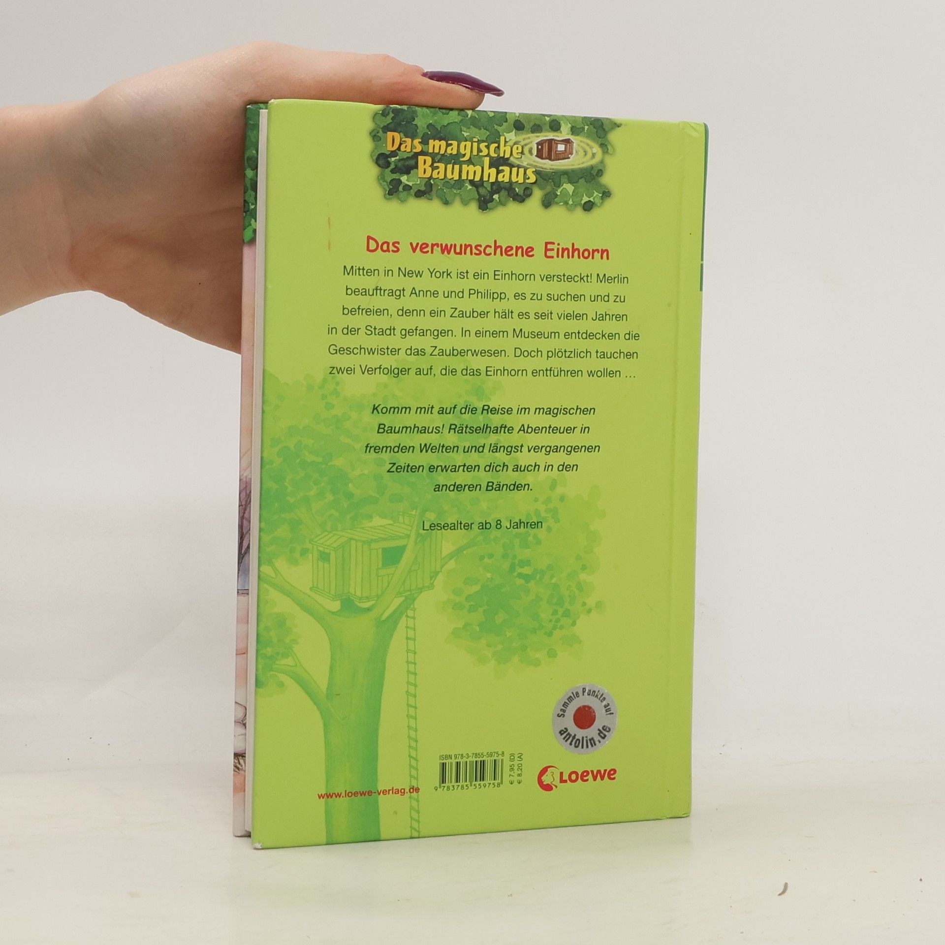 Das Buch ist bei deiner Buchhandlung vor Ort und bei vielen Online-Buchshops erhältlich! + Bücher, die Kinder gerne lesen wollen + Beliebte Themen: Abenteuer, Tiere, fremde Länder und Einhörner + Hochwertiges Hardcover + Mit vielen Illustrationen + Bereits über 10 Millionen verkaufte Bücher der Baumhaus-Reihe + Ausgewogenes Text-Bild-Verhältnis + Große Schrift + Kurze Kapitel + Mitten in New York ist ein Einhorn versteckt! Merlin beauftragt Anne und Philipp, es zu suchen und zu befreien, denn ein Zauber hält es seit vielen Jahren in der Stadt gefangen. In einem Museum entdecken sie das Zauberwesen, doch plötzlich tauchen zwei Verfolger auf, die das Einhorn entführen wollen... Komm mit auf die Reise im magischen Baumhaus! Rätselhafte Abenteuer in fremden Welten und längst vergangenen Zeiten erwarten dich auch in den nächsten Bänden. Die beliebte Kinderbuch-Reihe von Bestsellerautorin Mary Pope Osborne! Die Geschwister Anne und Philipp reisen mit dem magischen Baumhaus durch die Zeit. Sie erleben spannende Abenteuer, entdecken ferne Länder und lernen viele berühmte Persönlichkeiten kennen.