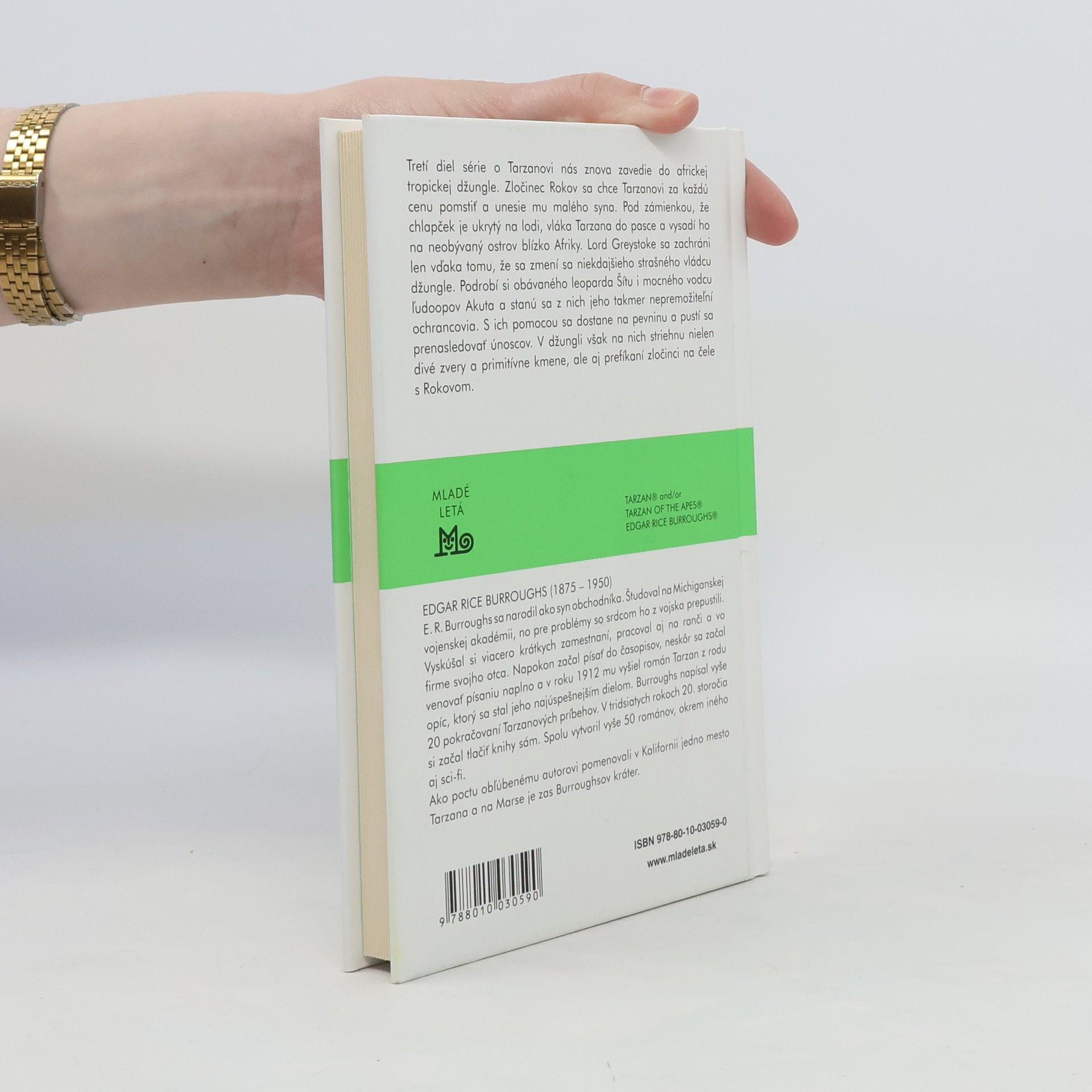 Tretí diel seriálu o Tarzanovi nás znova zavedie do tropickej džungle. Pavlovičovi a Rokovovi sa podarí vlákať Tarzana do pasce a vysadiť ho na neobývaný ostrov neďaleko Afriky. Tu si lord Greystoke podrobí obávaného leoparda Šítu a ľudoopov na čele s Akutom, najmocnejším z nich. S pomocou týchto šeliem sa dostane na pevninu, aby vysliedil únoscov svojho malého synčeka a milovanej manželky. Stopa je však stará niekoľko mesiacov a v džungli striehne množstvo nebezpečenstiev... Prvé vydanie v rámci edície Stopy, bez ilustrácií.