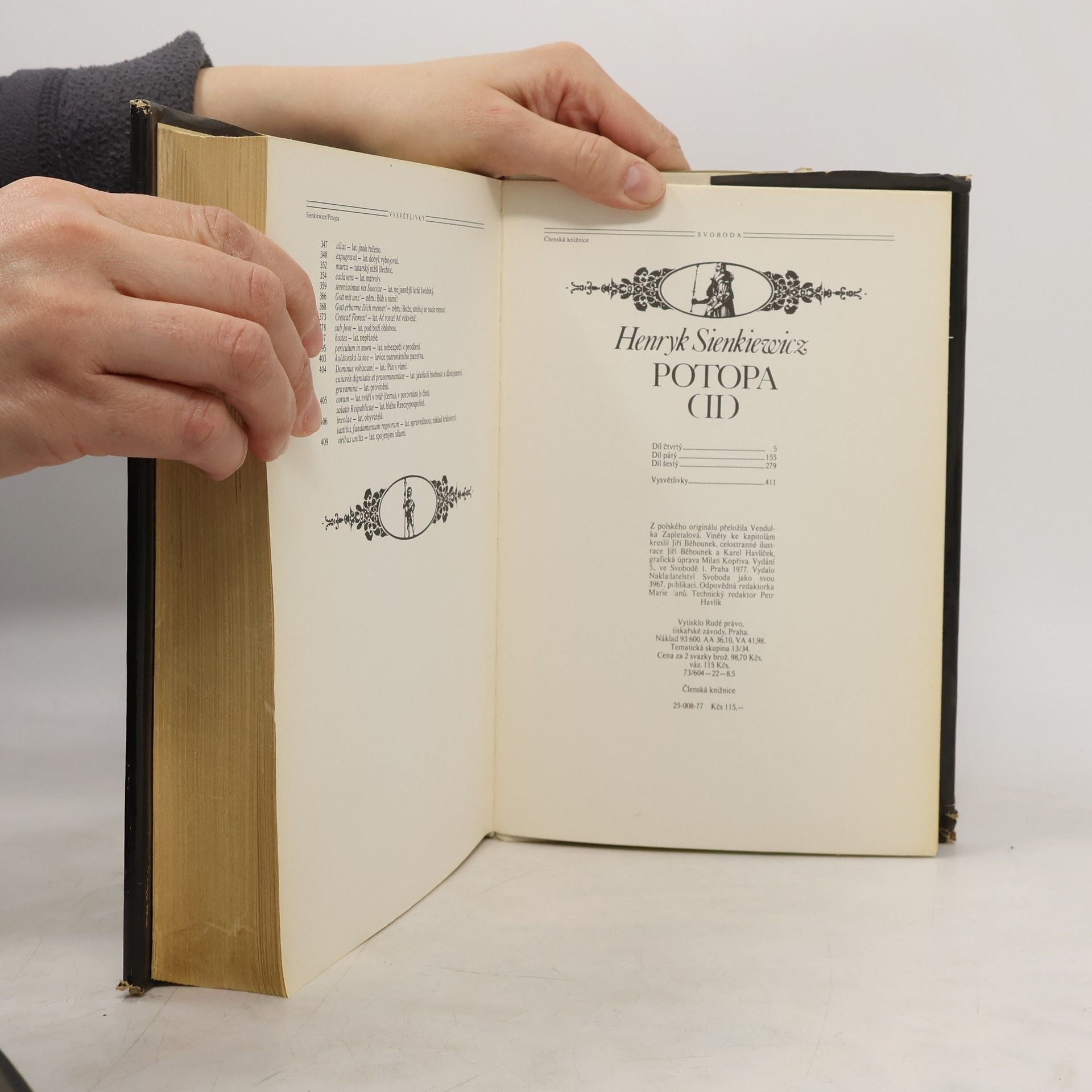 Druhá část monumentálního románu z polských dějin, pojednávající o jedné z nejdivočejších epoch polského království. Velkolepý román polského spisovatele, nositele Nobelovy ceny, je prostředním, dějově zcela samostatným dílem Sienkiewiczovy slavné historické trilogie. Potopa se odehrává na počátku druhé poloviny sedmnáctého století, za polsko-švédské války. Jedinečně zachycený obraz této bouřlivé doby se před námi promítá jako na širokém plátně: napínavé zápletky, barvité a věrohodné boje a bitvy, i život na šlechtických dvorech. Do popředí však zřetelně vystupují soukromé osudy hlavních hrdinů, plné nenadálých zvratů, bloudění, pochybností, ale i upřímných nadějí, statečnosti a velké lásky.