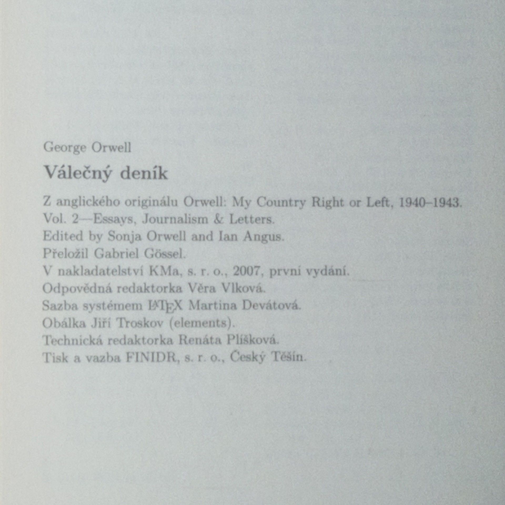 Válečný deník, George Orwell