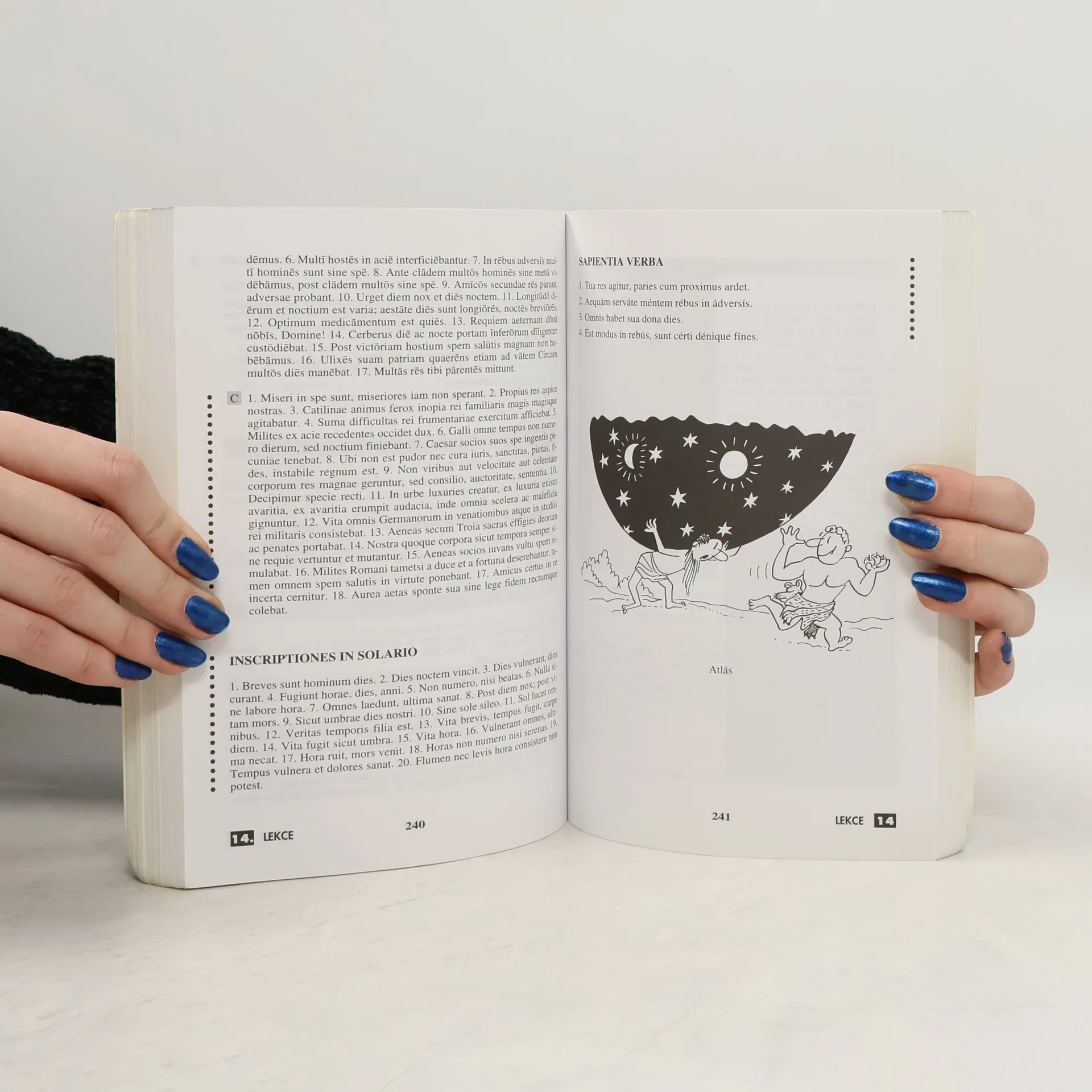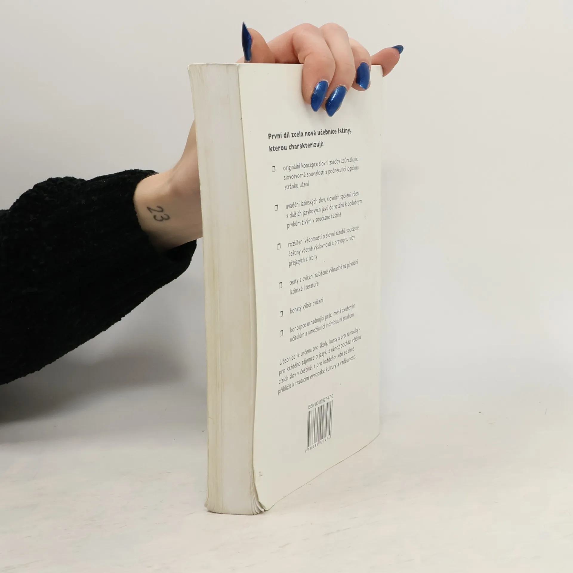 Tato originálně koncipovaná učebnice je určena pro školy, kursy i samouky. Rozdělená do tří dílů, první dva se zaměřují na základy latinské mluvnice a slovní zásoby, zatímco třetí díl obsahuje čítanku originálních latinských textů. Obsahuje rozsáhlý studijní a procvičující materiál, graficky rozlišený na studijní minimum a rozšiřující výuku, což ji činí vhodnou jak pro základní kursy, tak pro náročnější výuku. Učebnice zdůrazňuje spojitost původních latinských slov se současnou češtinou, oživuje ji fotografiemi uměleckých děl a humoristickými ilustracemi na téma starých řeckých bájí. První díl obsahuje kompletní pravidelné skloňování, tvary slovesného prézentního kmene a základní prvky syntaxe, zatímco druhý díl dokončuje nauku o latinském slovese. Oba díly mají schvalovací doložku MŠMT ČR. První díl se vyznačuje originální koncepcí slovní zásoby, uváděním latinských slov do vztahu k obdobným prvkům v češtině, a rozšiřuje znalosti o slovní zásobě včetně výslovnosti a pravopisu. Obsahuje texty a cvičení založené na původní latinské literatuře a bohatý výběr cvičení, což usnadňuje práci méně zkušeným učitelům a podporuje individuální studium. Učebnice je určena pro každého, kdo se chce přiblížit tradicím evropské kultury a vzdělanosti.