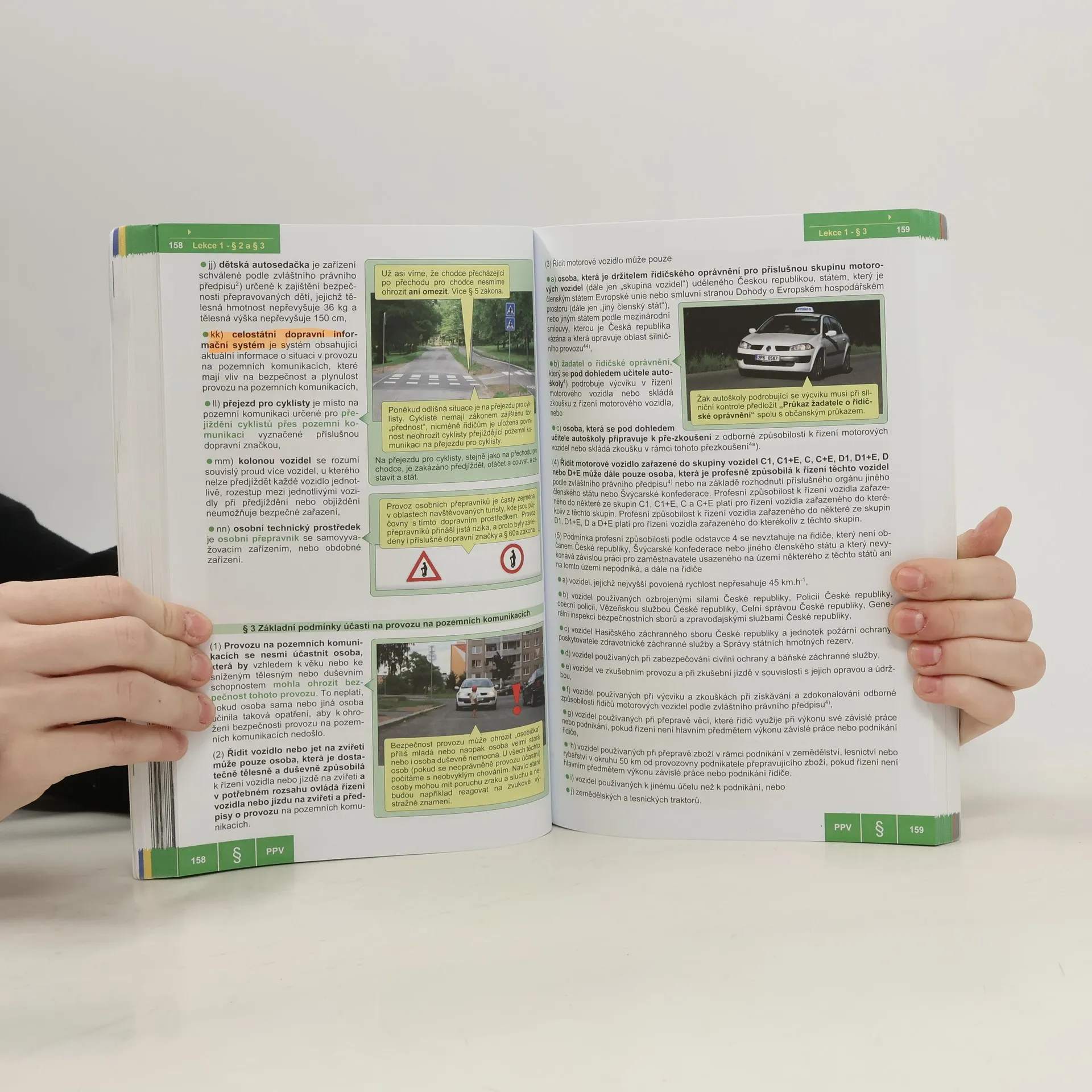 Již osmnácté aktualizované vydání této učebnice přináší pečlivý výběr zejména té látky, která je nutná pro úspěšné složení všech částí závěrečné zkoušky. Čtenáři volí tuto učebnici pro její názornost, velké množství fotografií a obrázků, i pro její celkovou kreativitu. Komiksovým způsobem vedený výklad látky se cíleně vztahuje vždy ke konkrétnímu vozidlu, řidiči, dopravní značce, apod. Barevné rozlišení jednotlivých témat zaručuje rychlé vyhledání příslušné učební látky. Součástí publikace jsou i tzv. ostré testy včetně tabulek pro zápis správných odpovědí a vyhodnocovacích šablon pro kontrolu úspěšnosti.