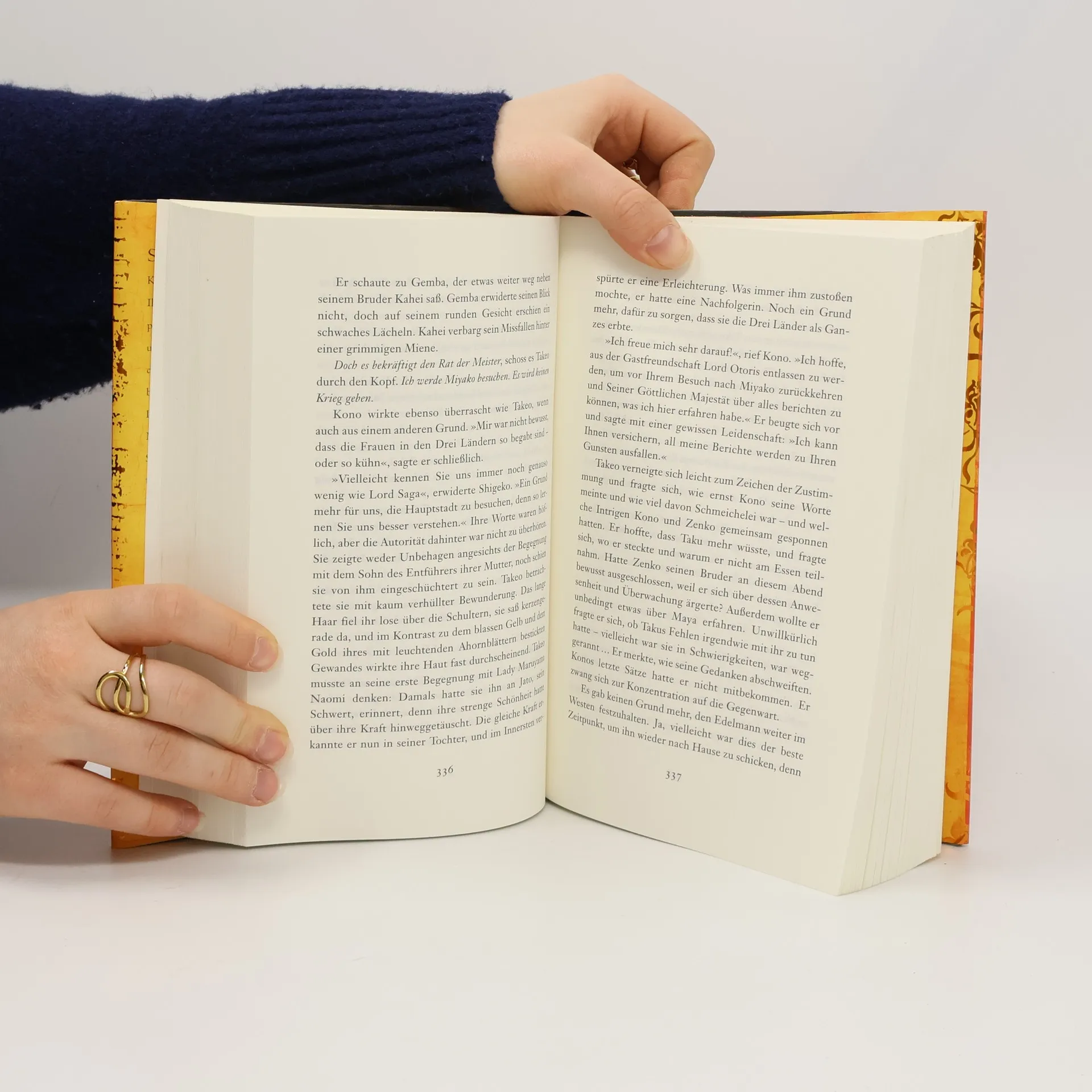 Seit sechzehn Jahren herrschen Takeo und Kaede gemeinsam über die Drei Länder. Ihre Liebe und Harmonie, aber auch die perfekte Balance zwischen männlicher und weiblicher Kraft haben ihrem Land dauerhaften Frieden und großen Reichtum beschert. Das bleibt auch dem Kaiser im fernen Miyako und seinem obersten General, Saga Hideki, nicht verborgen. Der General fordert Takeo zu einem Wettkampf heraus: Wenn er verliert, muss er nicht nur abdanken und sein Land verlassen, sondern auch in eine Heirat seiner schönen Tochter Shigeko mit Saga einwilligen. Mit seinen treusten Gefolgsleuten reist Takeo nach Miyako. Und schon bald überschlagen sich die Ereignisse, denn ein schwerer Verrat droht das zu zerstören, wofür Takeo sein Leben lang gekämpft hat …