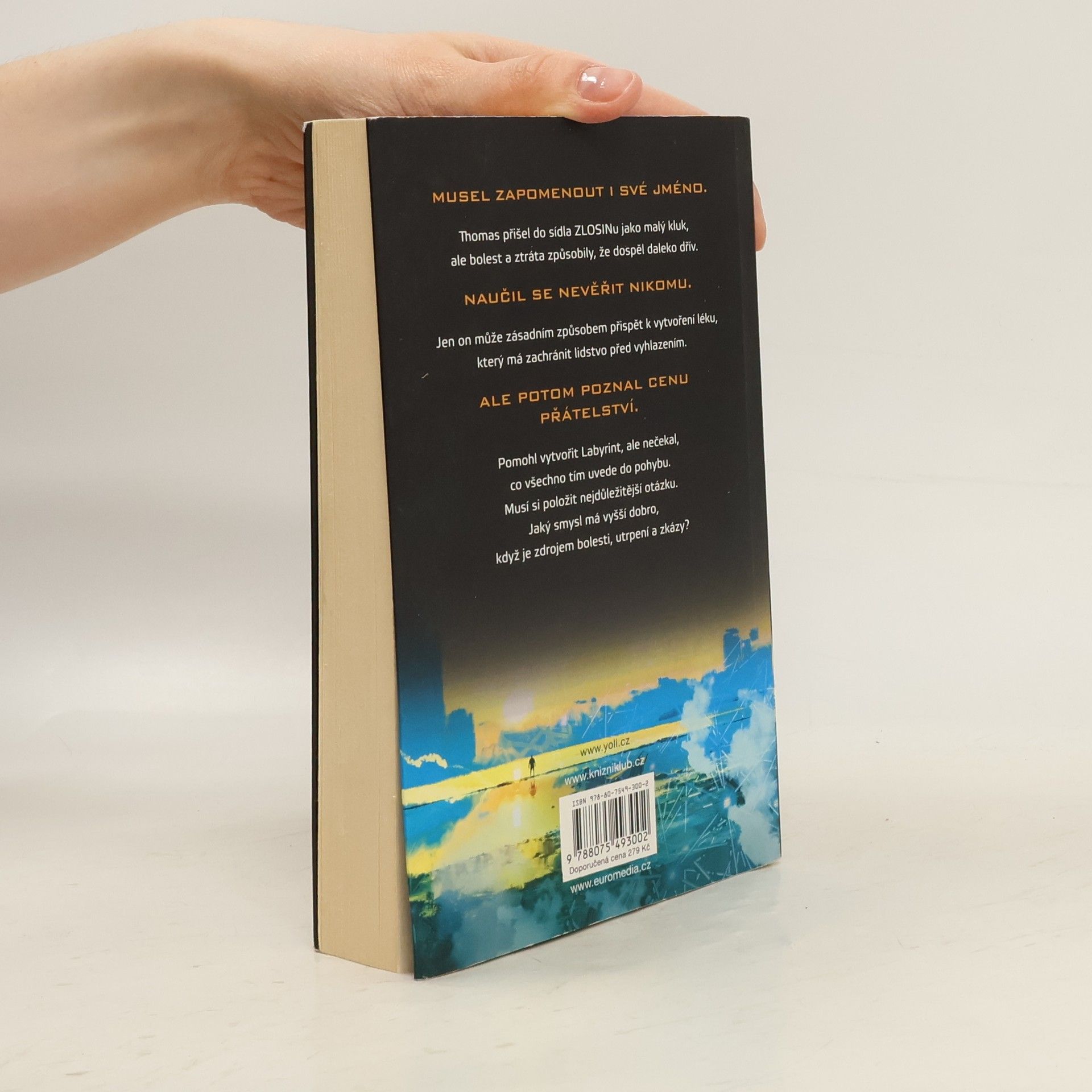 Druhý prequel celosvětově populární scifi série o Labyrintu. – Nastal konec světa. Lesy hořely, jezera a řeky vyschly, hladiny oceánů se zvýšily. Pak přišla epidemie, horečka, která zasáhla celou zeměkouli. Umíraly rodiny, vládlo násilí a člověk zabíjel člověka. Pak přišel ZLOSIN a pokusil se najít odpověď. A objevil dokonalého chlapce. Ten chlapec se jmenoval Thomas a postavil Labyrint. Existují tajemství. Existují lži. A existují pouta, která by historie nedokázala předpovědět. Toto je příběh toho chlapce, Thomase, a toho, jak vybudoval Labyrint, který mohl jako jediný strhnout. Všechny otázky budou zodpovězeny.
