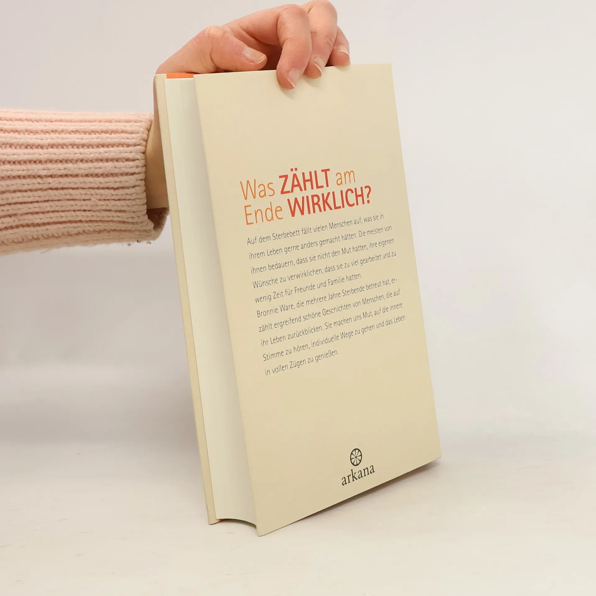 5 Dinge, die im Leben wirklich zählen. Was zählt am Ende wirklich? Auf dem Sterbebett, wenn klar wird, dass das Leben sich dem Ende zuneigt? Nach vielen Reisen durch die ganze Welt, auf der Suche nach dem, was dem Leben Sinn gibt, findet die Australierin Bronnie Ware eine neue Aufgabe. Sie begleitet Sterbende in den letzten Wochen ihres Lebens. In ihrem Buch erzählt sie von wunderbaren Begegnungen und berührenden Gesprächen, die ihr Leben tiefgreifend verändert haben. Die Menschen, die sie trifft, stellen viel zu oft fest, dass sie ihre eigenen Wünsche hinten angestellt und zu viel gearbeitet haben, dass sie sich zu wenig Zeit für Familie und Freunde genommen und – vor allem – sich nicht erlaubt haben, glücklich zu sein. Es sind Erkenntnisse, die nachdenklich machen und in Erinnerung rufen, worauf es wirklich ankommt, wenn wir mit einem Lächeln aus dem Leben treten wollen. Für sich selbst hat Bronnie Ware nach diesen Erfahrungen entschieden, dass sie nur noch das macht, was sie wirklich will. Ihr ermutigendes Buch hat die Kraft, Veränderungen anzustoßen, um wirklich das Leben zu führen, das wir wollen.