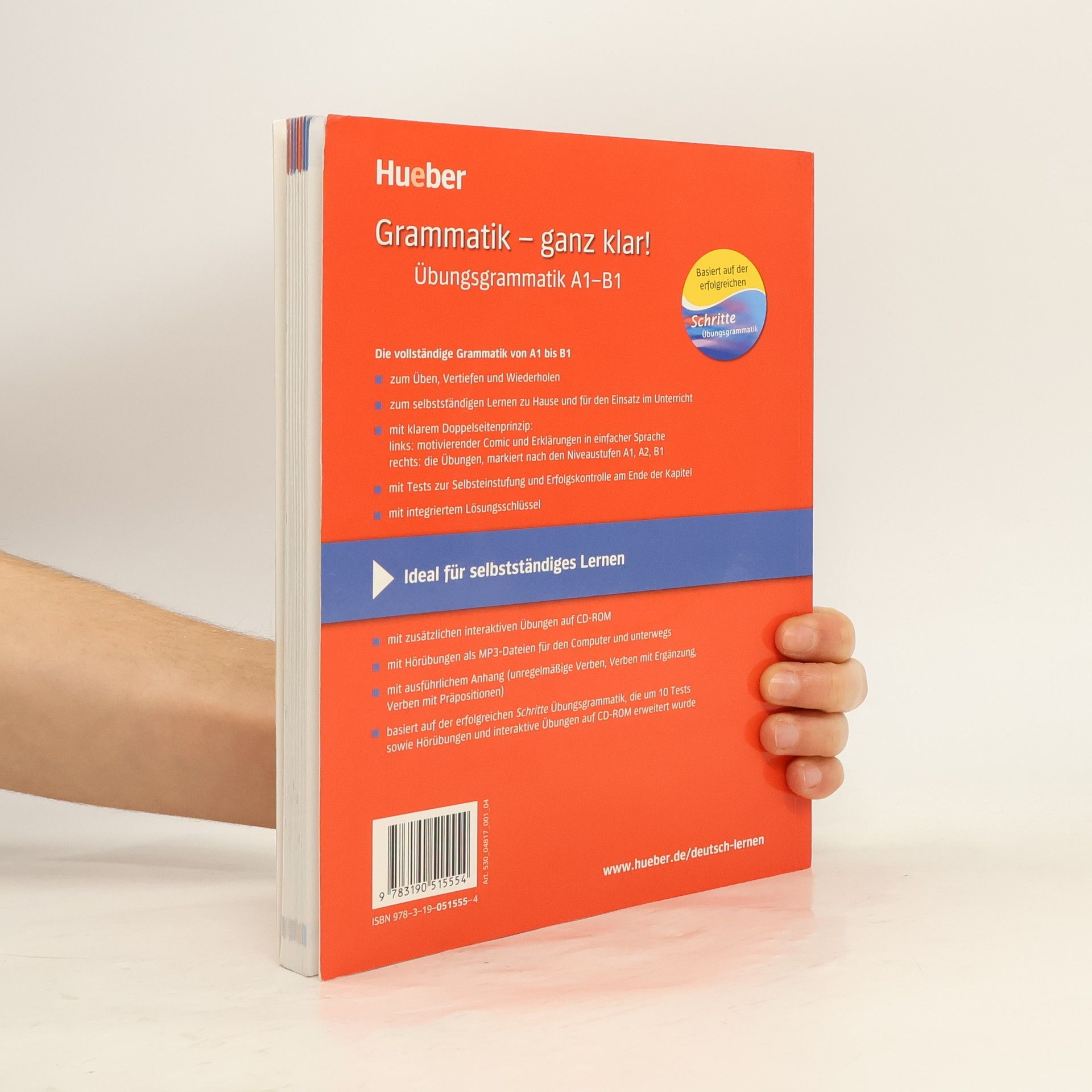 Niveau A1 bis B1 Zielgruppe: Lernende der Niveaustufen A1–B1 Grammatik – ganz klar! basiert auf der Schritte Übungsgrammatik und bietet den Lernern mit dem Doppelseitenprinzip die grundlegende deutsche Grammatik in übersichtlicher und klarer Form: links ein motivierender Comic und Erklärungen in einfacher Sprache – rechts nach Niveaustufen gekennzeichnete Übungen. Der Lernerfolg kann außerdem nach jedem Kapitel in Selbsttests überprüft werden. Bei der Installation kann es zu der Fehlermeldung Installationsdatei beschädigt kommen. Tausende Softwareprodukte vieler verschiedener Hersteller sind davon betroffen. Unter https://go. hueber. de/aktuell (https://go. hueber. de/aktuell) stellen wir Ihnen für unsere Produkte ein Update bereit, das den Fehler behebt.