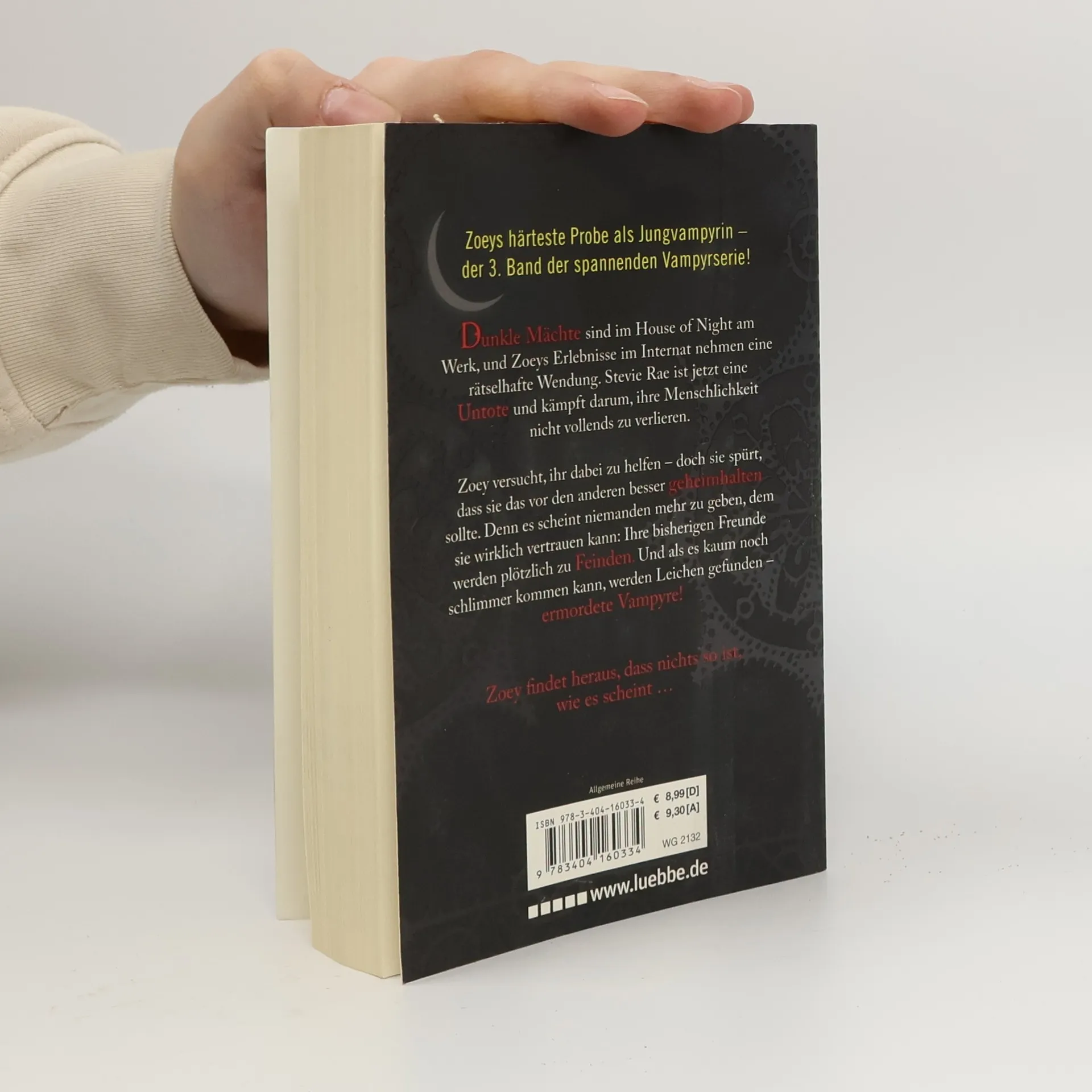 Dunkle Mächte sind im House of Night am Werk, und Zoeys Erlebnisse im Internat nehmen eine rätselhafte Wendung. Stevie Rae ist jetzt eine Untote und kämpft darum, ihre Menschlichkeit nicht vollends zu verlieren. Zoey versucht, ihr dabei zu helfen - doch sie spürt, dass sie das vor den anderen besser geheimhalten sollte. Denn es scheint niemanden mehr zu geben, dem sie wirklich vertrauen kann: Ihre bisherigen Freunde werden plötzlich zu Feinden. Und als es kaum noch schlimmer kommen kann, werden Leichen gefunden - ermordete Vampyre! Zoey findet heraus, dass nichts so ist, wie es scheint ...