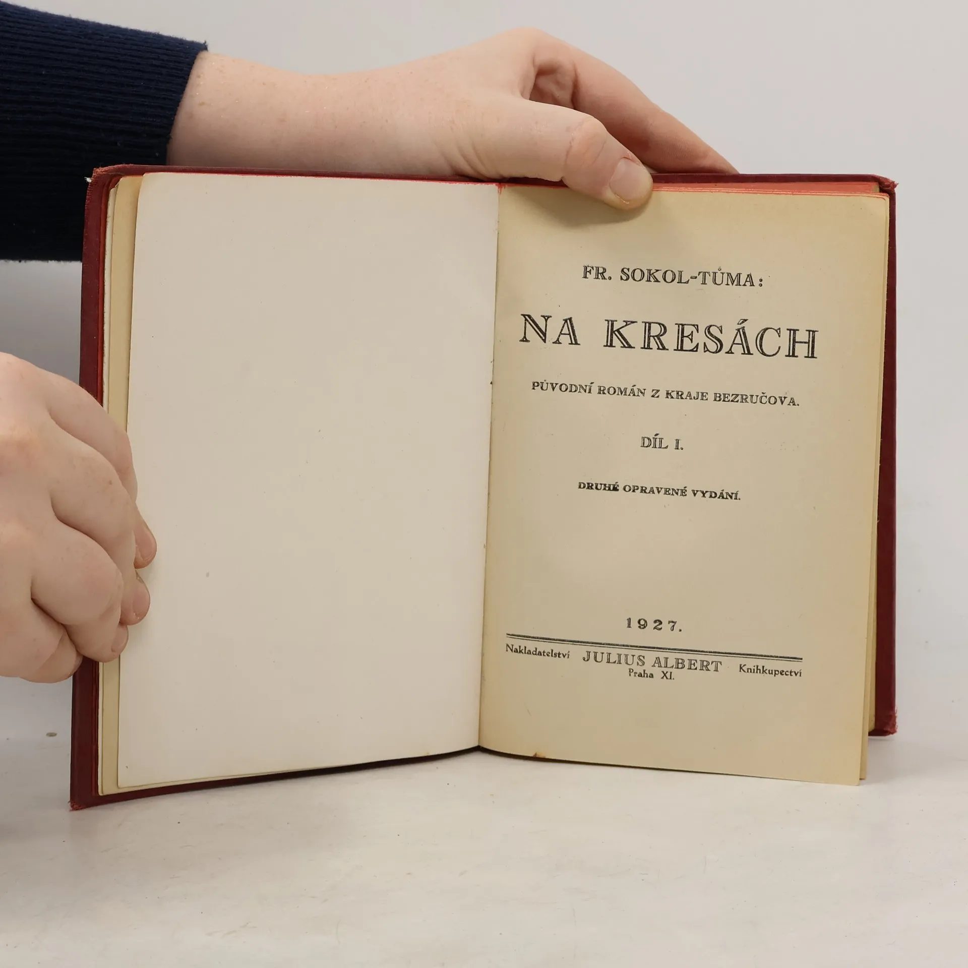 Původní román z kraje Bezručova. Díl první, osmé opravené vydání. Přebal knihy všitý v knize.