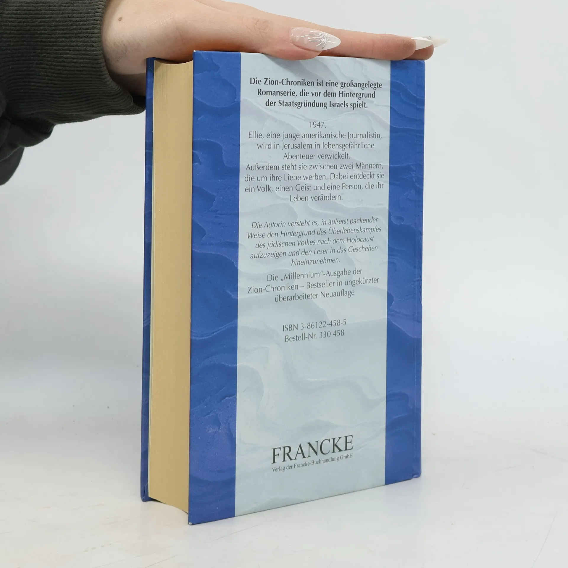 Jerusalem, 1947: Der jungen amerikanischen Journalistin Ellie Warne werden antike Schriftrollen zum Kauf angeboten, die angeblich jahrtausendealt sind. Aber wie soll sie die Echtheit der Dokumente feststellen? Schließlich ist sie nicht als Archäologin vor Ort, sondern als Fotografin. Als solche will sie die Welt für das Schicksal der jüdischen Bevölkerung in Jerusalem sensibel machen. Als sie mit ihrer Kamera etwas fotografiert, das nicht für die Öffentlichkeit bestimmt ist, kann sie nicht ahnen, in welcher Gefahr sie schwebt. Und mit ihr die Schriftrollen. Band 1 der Zion Chroniken, einer großangelegten Serie, die vor dem Hintergrund der Staatsgründung Israels im Mai 1948 spielt. Packend schildert die Bestsellerautorin Bodie Thoene das Schicksal mutiger Menschen, die alles dafür riskieren, dass die Juden nach dem Holocaust ein neues Zuhause finden.