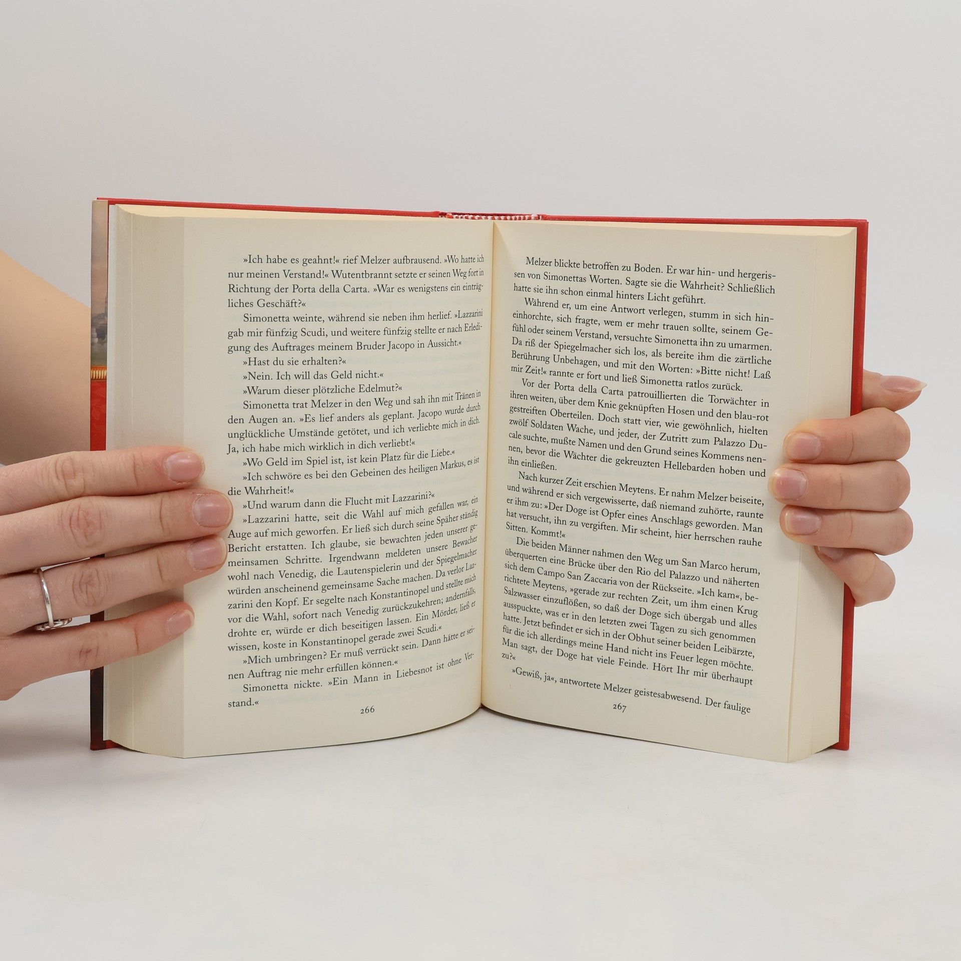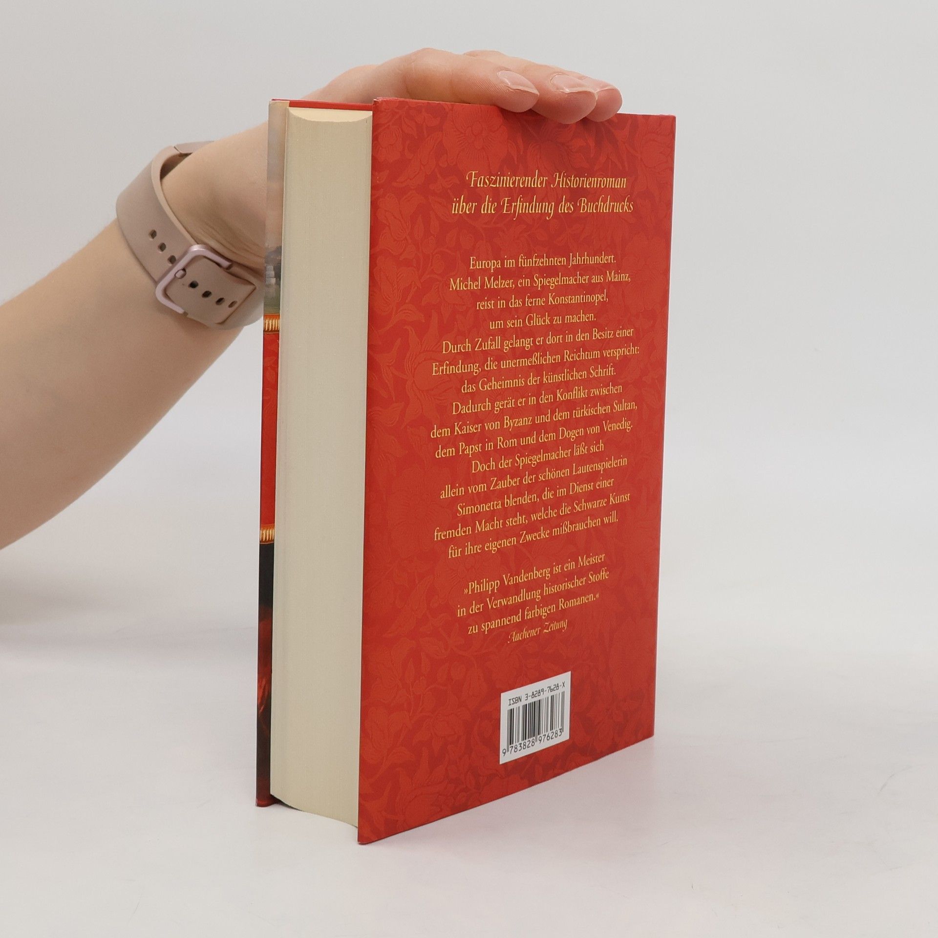Europa im fünfzehnten Jahrhundert. Michel Melzer, ein Spiegelmacher aus Mainz, reist in das ferne Konstantinopel, um sein Glück zu machen. Durch Zufall gelangt er dort in den Besitz einer Erfindung, die unermeßlichen Reichtum verspricht: das Geheimnis der künstlichen Schrift. Dadurch gerät er in den Konflikt zwischen dem Kaiser von Byzanz und dem türkischen Sultan, dem Papst in Rom und dem Dogen von Venedig. Doch der Spiegelmacher läßt sich allein vom Zauber der schönen Lautenspielerin Simonetta blenden, die im Dienst einer fremden Macht steht, welche die Schwarze Kunst für ihre eigenen Zwecke mißbrauchen will.