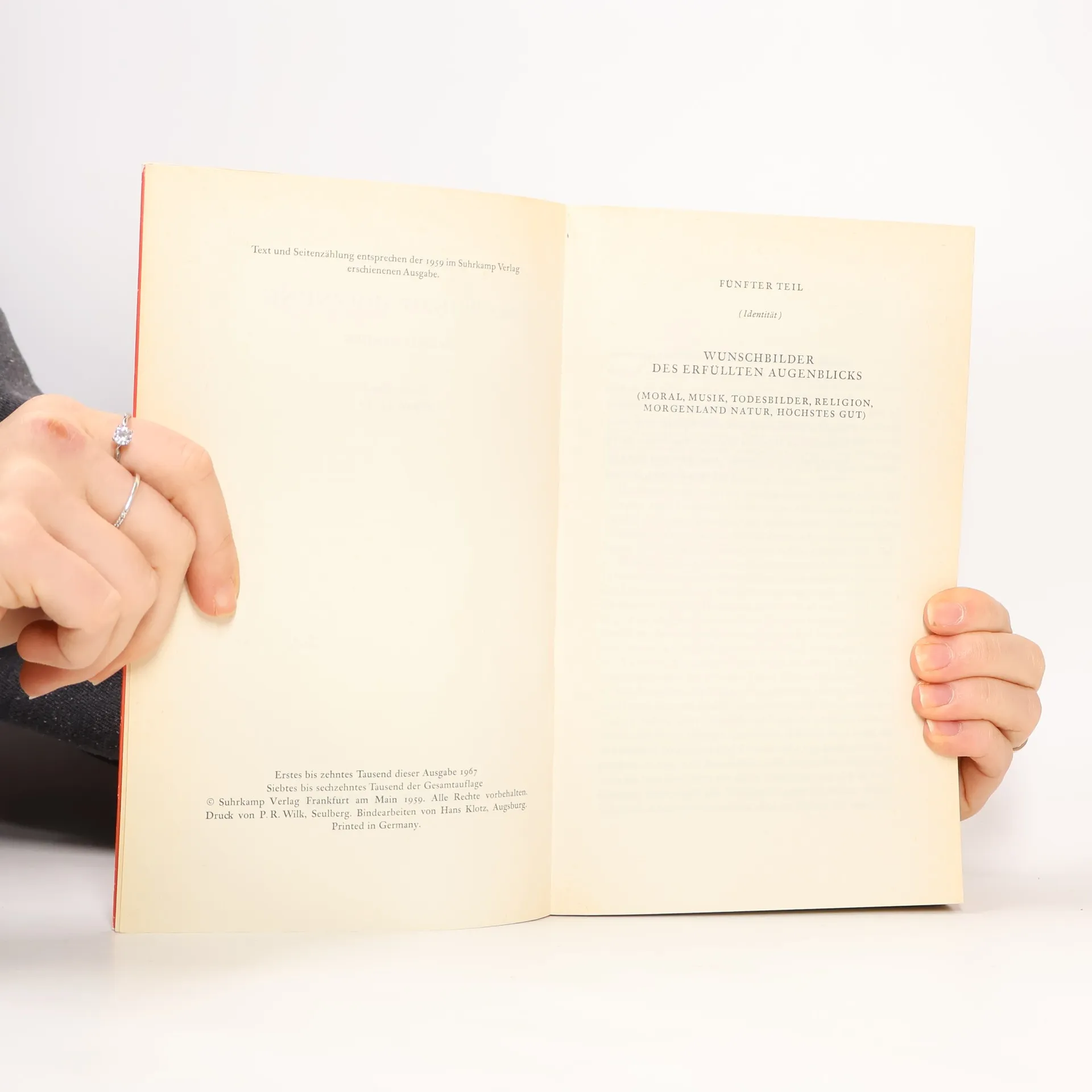 Der Text gliedert sich in mehrere Teile, die verschiedene Aspekte menschlicher Wünsche und Träume beleuchten. Im ersten Teil wird die Thematik der Tagträume und deren Unterschiede zu Nachtträumen behandelt. Es wird erörtert, wie Wünsche im Alter variieren und welche Bilder sie hervorrufen. Der zweite Teil widmet sich dem antizipierenden Bewusstsein, das die Triebe des Menschen analysiert und deren historische Begrenztheit reflektiert. Hier wird auch die Rolle des Noch-Nicht-Bewussten und der utopischen Funktion in der menschlichen Psyche untersucht. Im dritten Teil wird die Darstellung von Wunschbildern in verschiedenen Medien wie Märchen, Film und Theater thematisiert. Es wird die Frage aufgeworfen, wie Menschen sich schöner darstellen und welche Rolle das Spiegelbild dabei spielt. Der vierte Teil beschäftigt sich mit der Konstruktion einer besseren Welt, indem er utopische Ideen in Bereichen wie Gesundheit, Gesellschaftssysteme und Technik betrachtet. Der letzte Teil thematisiert die Identität und die moralischen sowie spirituellen Dimensionen des erfüllten Augenblicks. Hier wird die Suche nach dem höchsten Gut und die Beziehung zwischen Individuum und Gemeinschaft beleuchtet. Der Text bietet eine facettenreiche Analyse von Wünschen, Träumen und der menschlichen Natur, die sowohl philosophische als auch praktische Perspektiven umfasst.