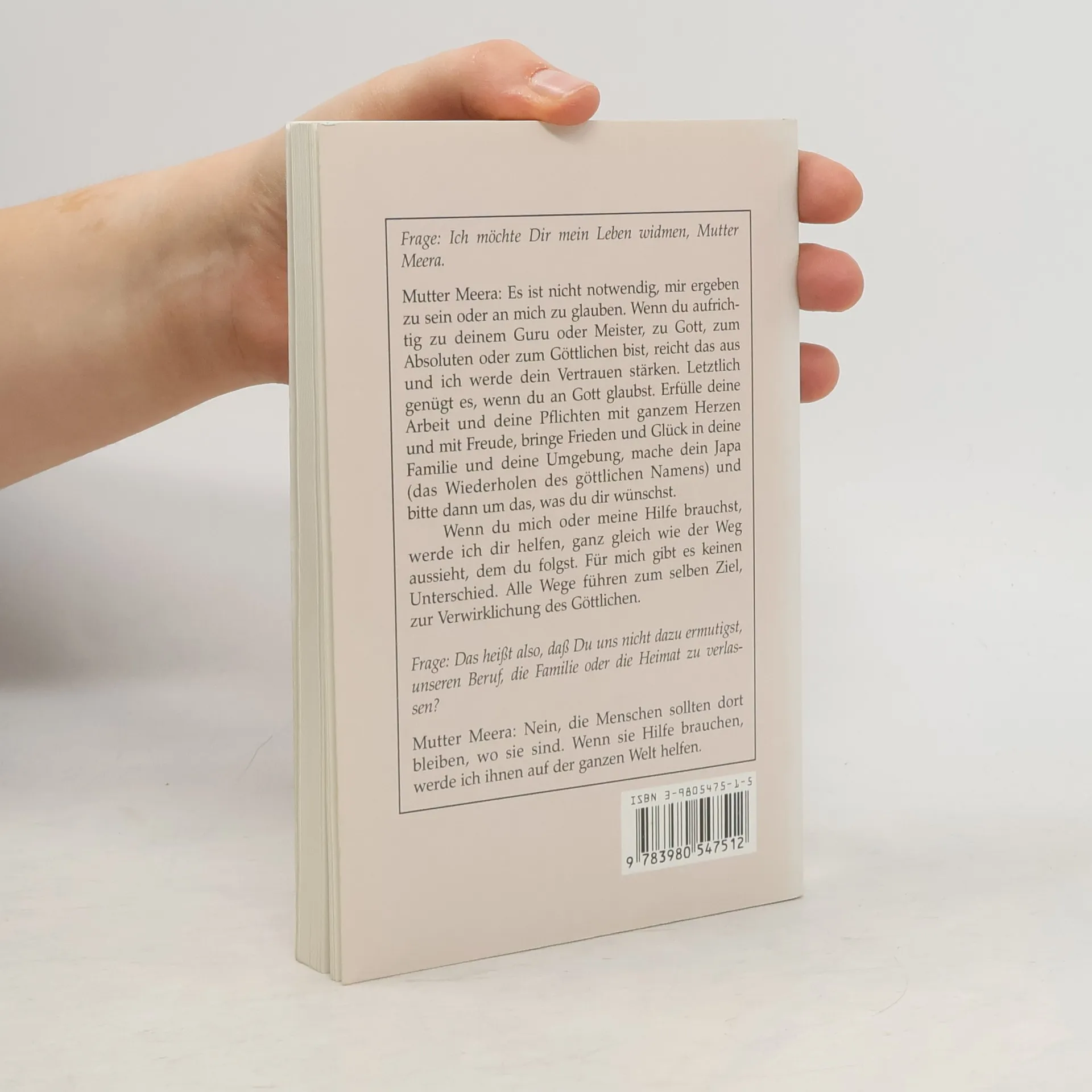 Mutter Meera antwortet auf Fragen von Devotees, die ihr über die Jahre hinweg gestellt worden sind, hinsichtlich ihrer Identität, ihrer Arbeit und ihrer Mission, und äussert sich über die Arbeit der Göttlichen Mutter in der Welt.